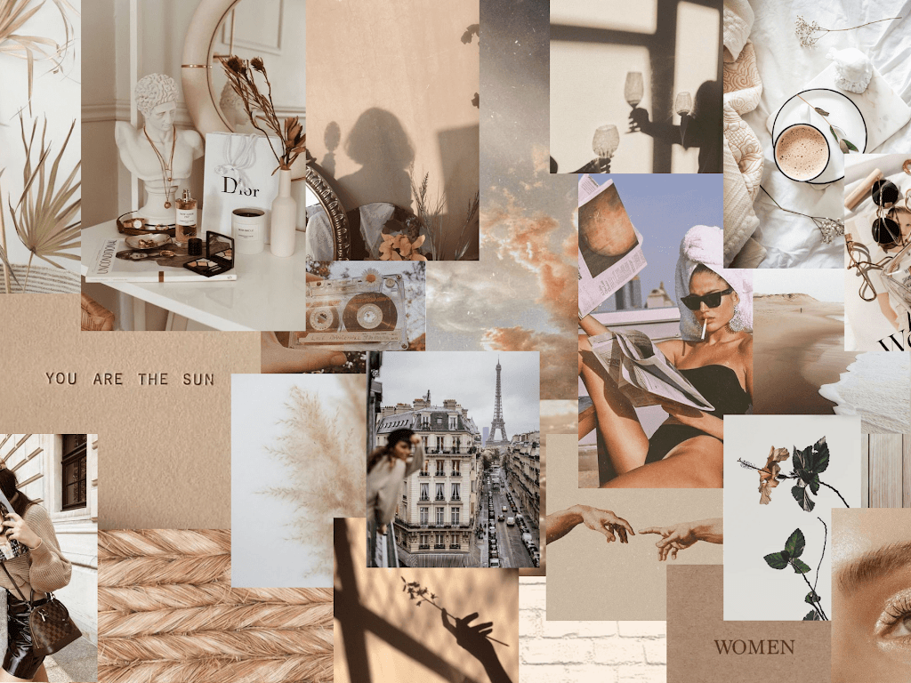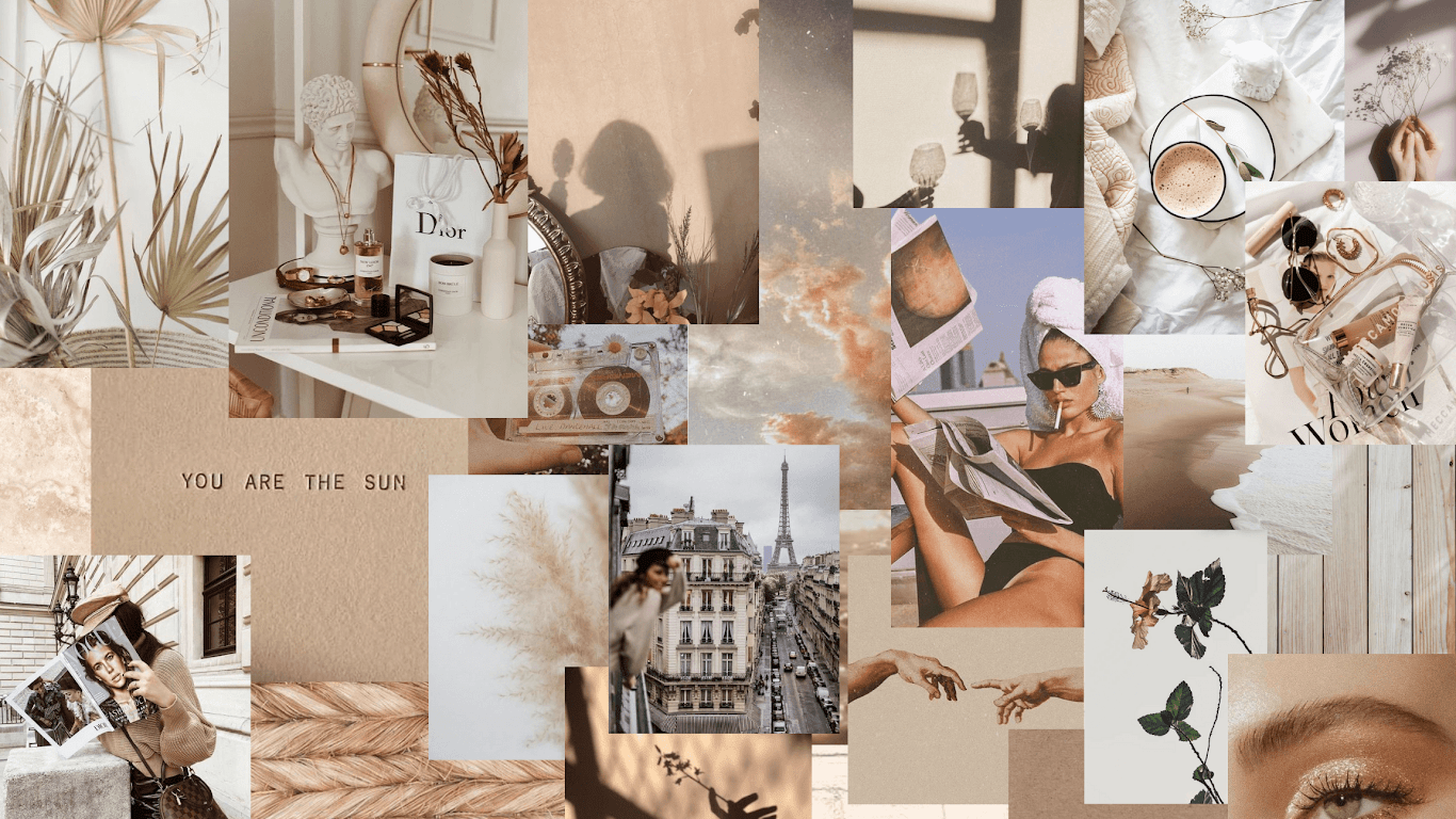 Beige, Aesthetic, Collage, Parisian Full HD Desktop Wallpaper