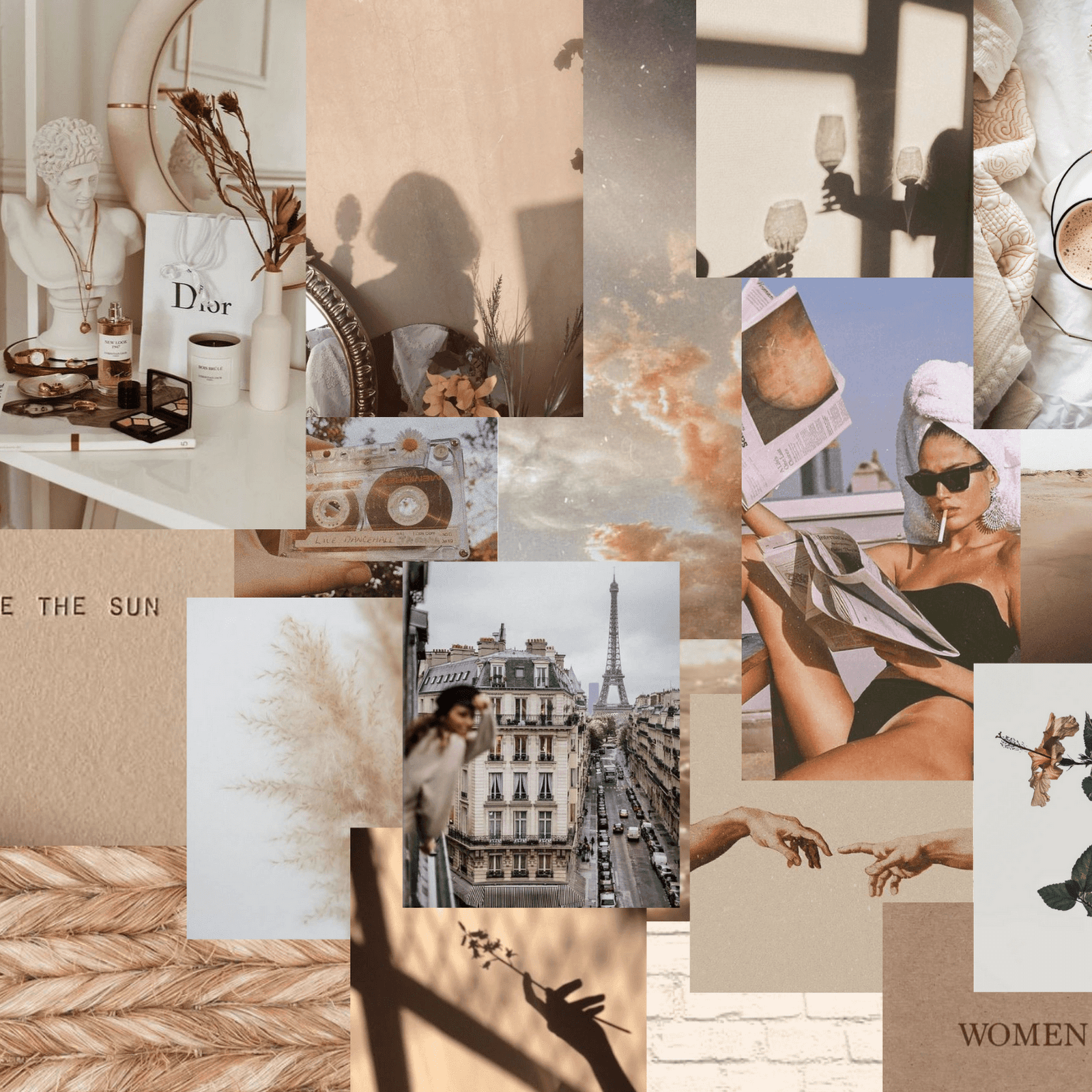 Beige, Aesthetic, Collage, Parisian Full HD Desktop Wallpaper