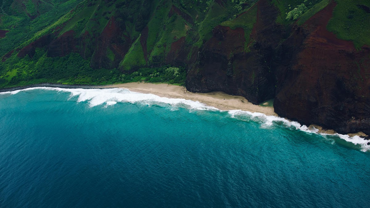 Cliffs, Ocean, Beach, Coast, Aerial 4K Wallpaper Background with a maximum resolution of 3840x2160 px.