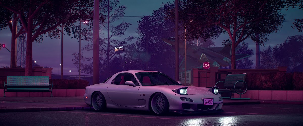 Mazda Rx7, Night, JDM, Parking, Purple 4K Ultrawide Desktop Wallpaper