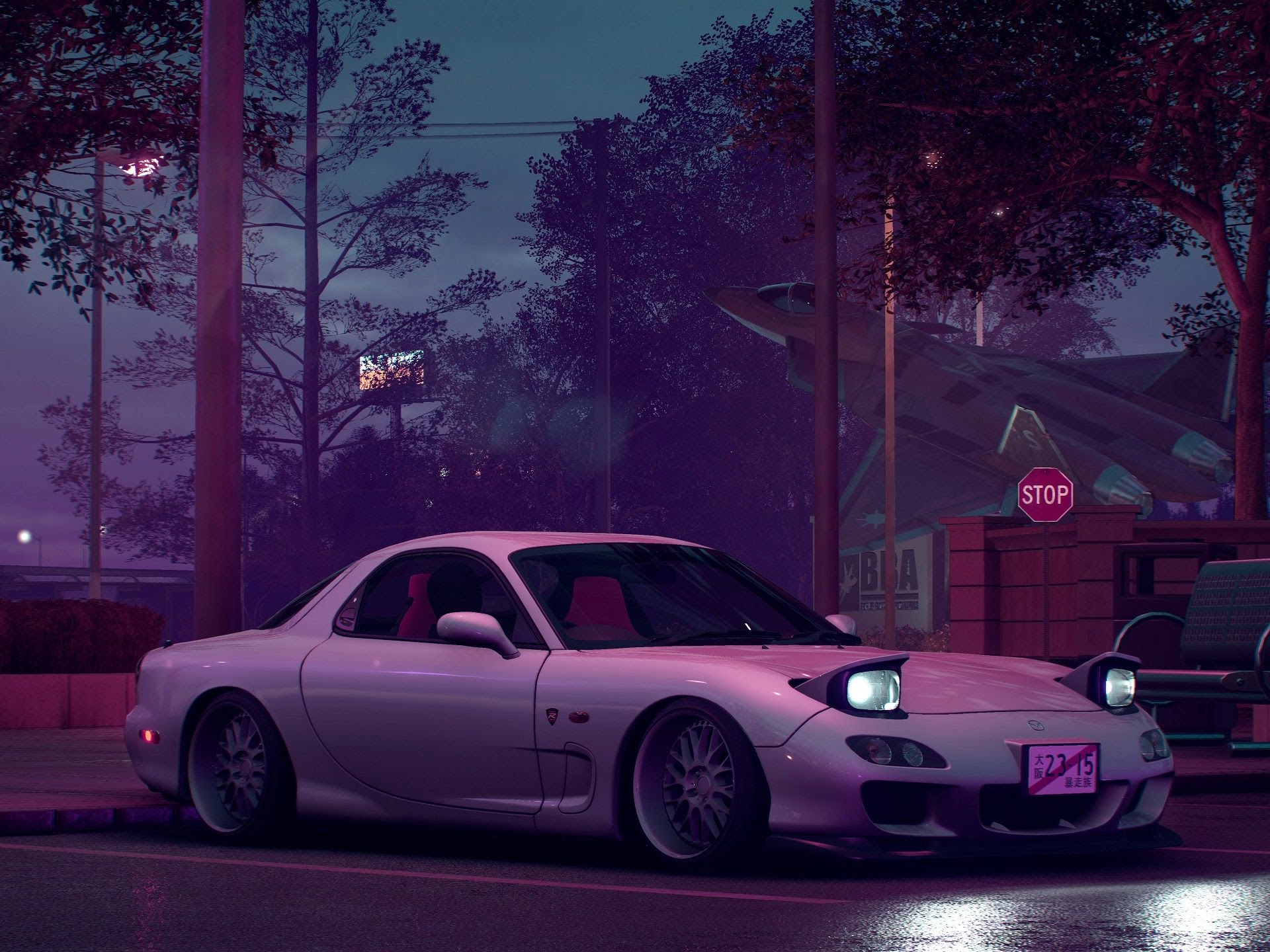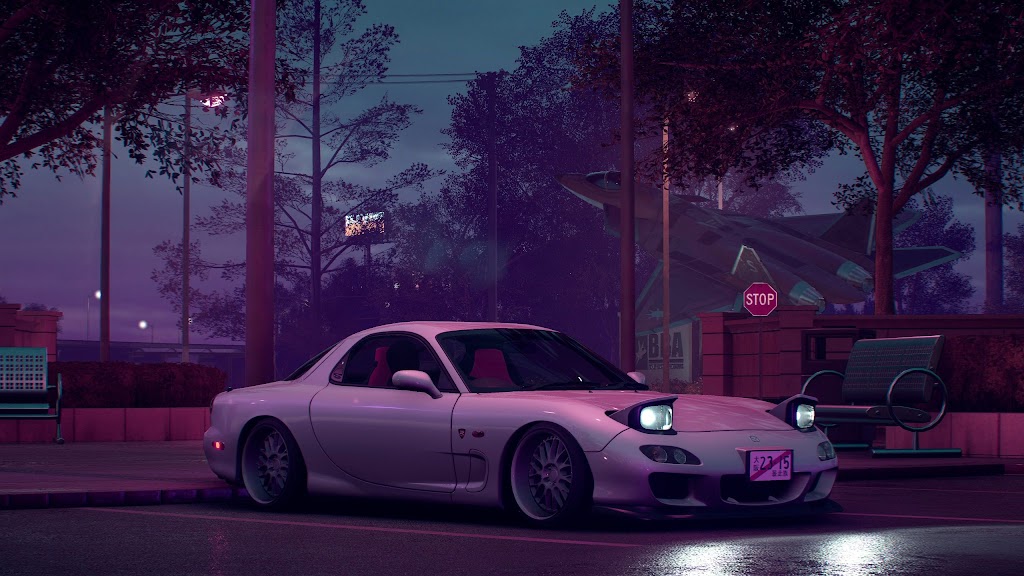 Mazda Rx7, Night, JDM, Parking, Purple 4K Ultrawide Desktop Wallpaper