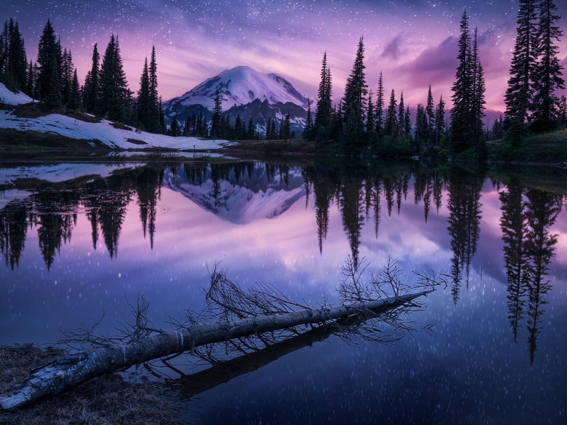 Mountain, Lake, Reflection, Stars 4K Wallpaper Background