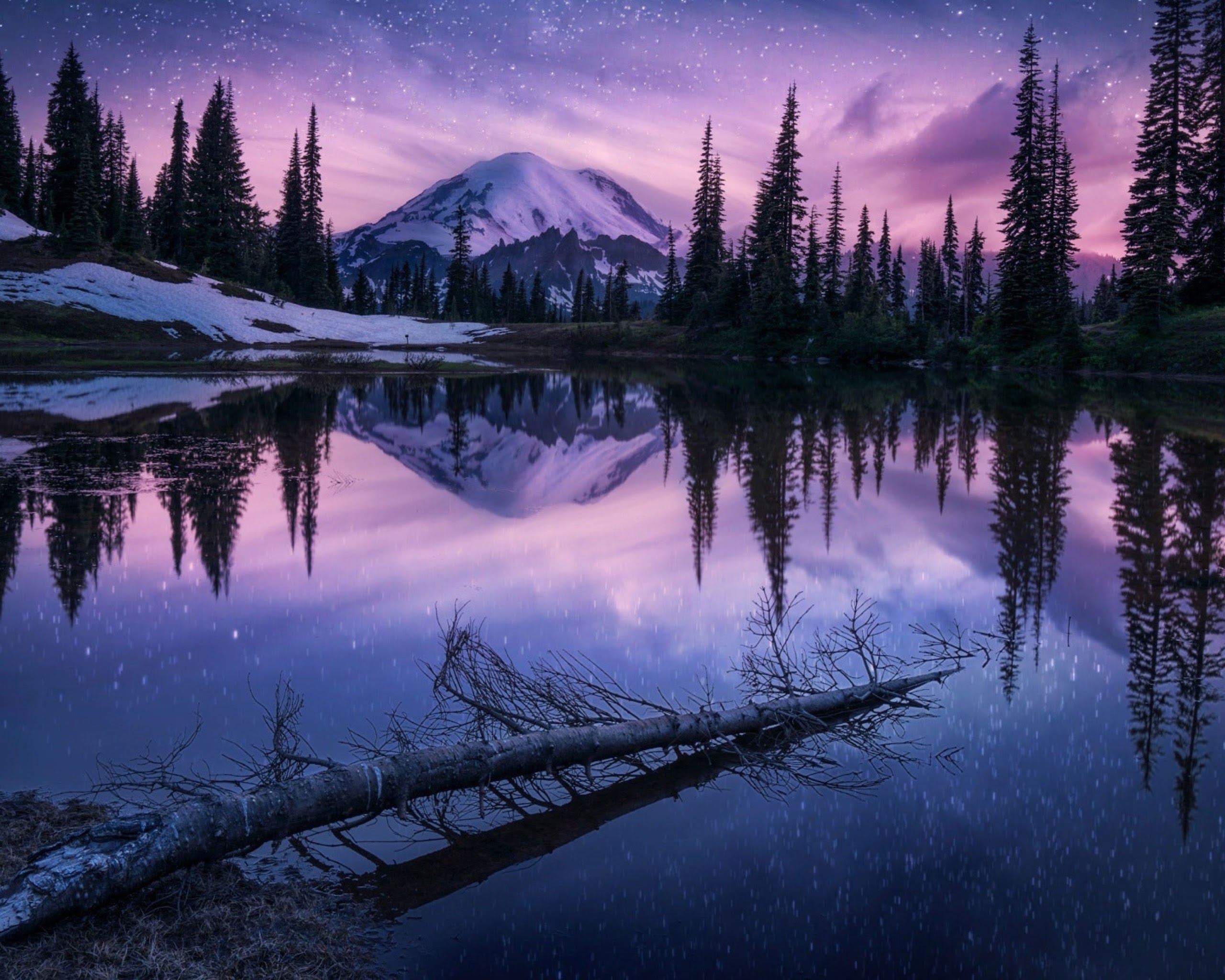 Mountain, Lake, Reflection, Stars 4K Wallpaper Background with a maximum resolution of 5120x2880 px.