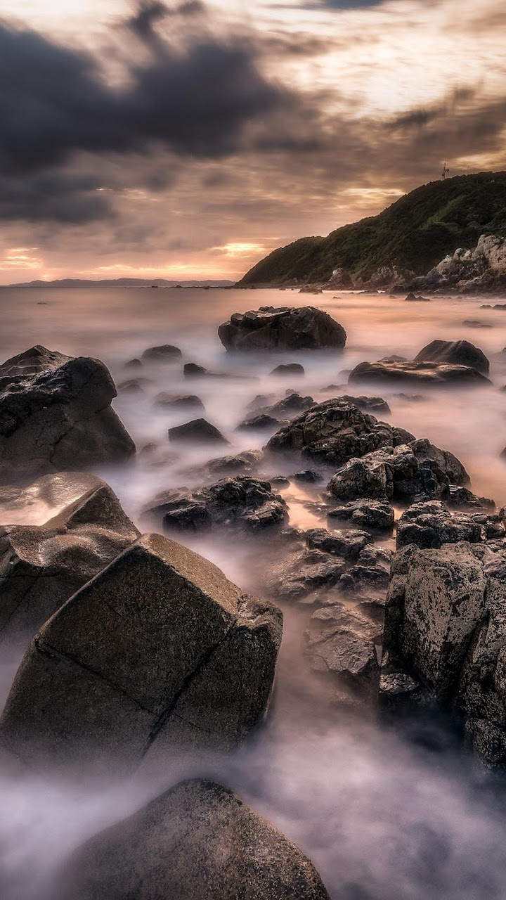 Seascape, Coastline, Rocks, Long Exposure 5K Desktop Wallpaper