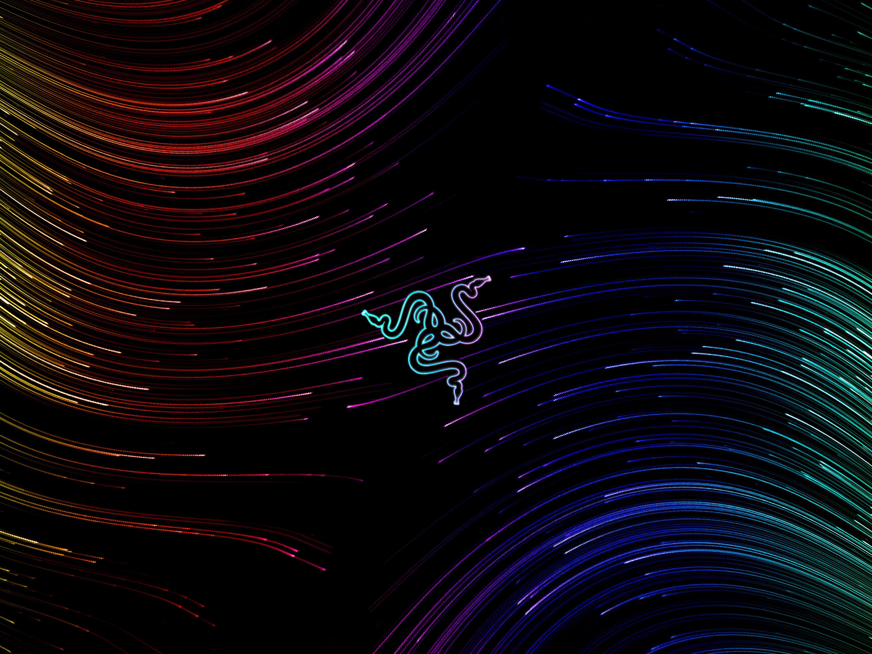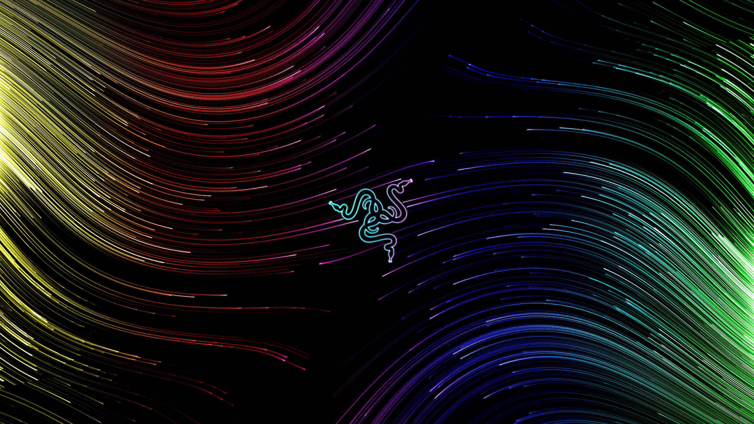 Razer, Lines, Abstract, Neon, Colorful 4K Wallpaper Background with a maximum resolution of 3840x2160 px.