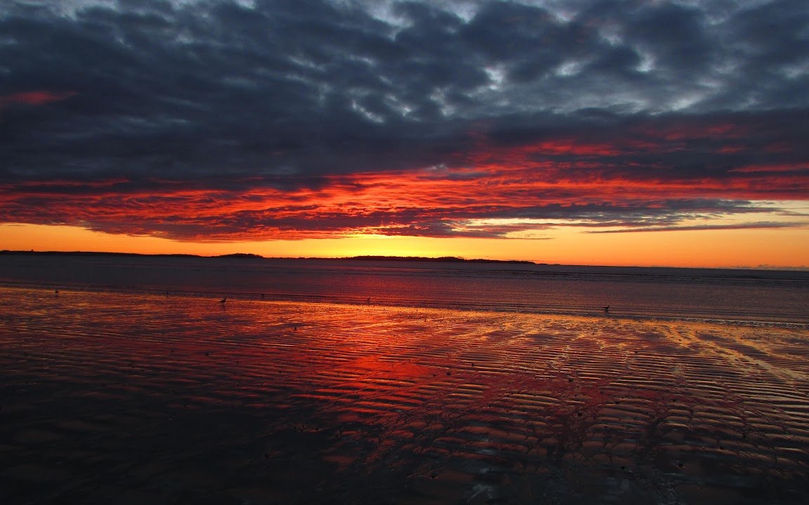 Sunset, Seascape, Clouds, Orange 4K Wallpaper Background with a maximum resolution of 4608x3456 px.