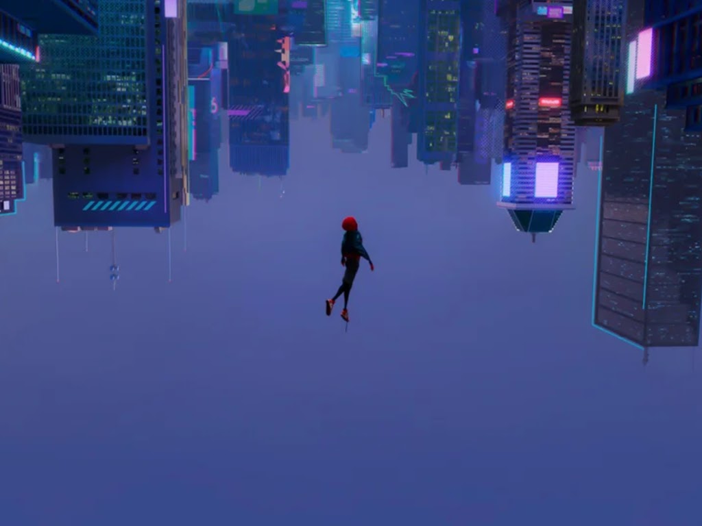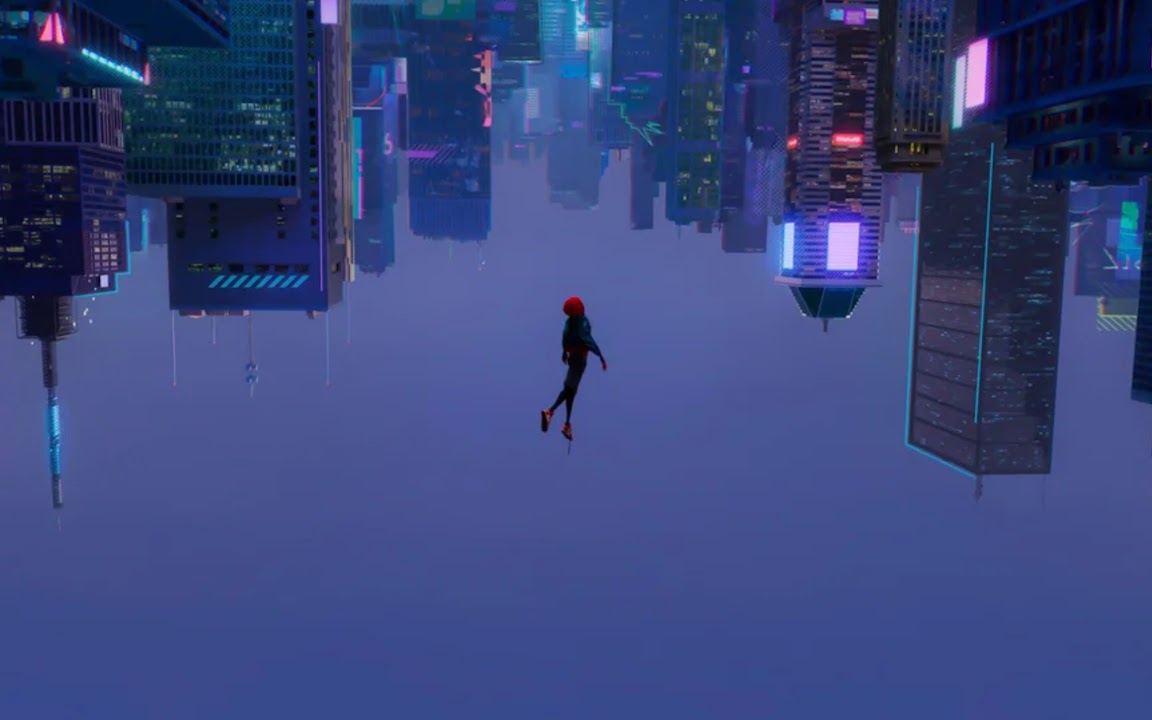 Miles Morales, Spider Verse, Upside-down, Cityscape 4K Wallpaper Background with a maximum resolution of 3840x2160 px.