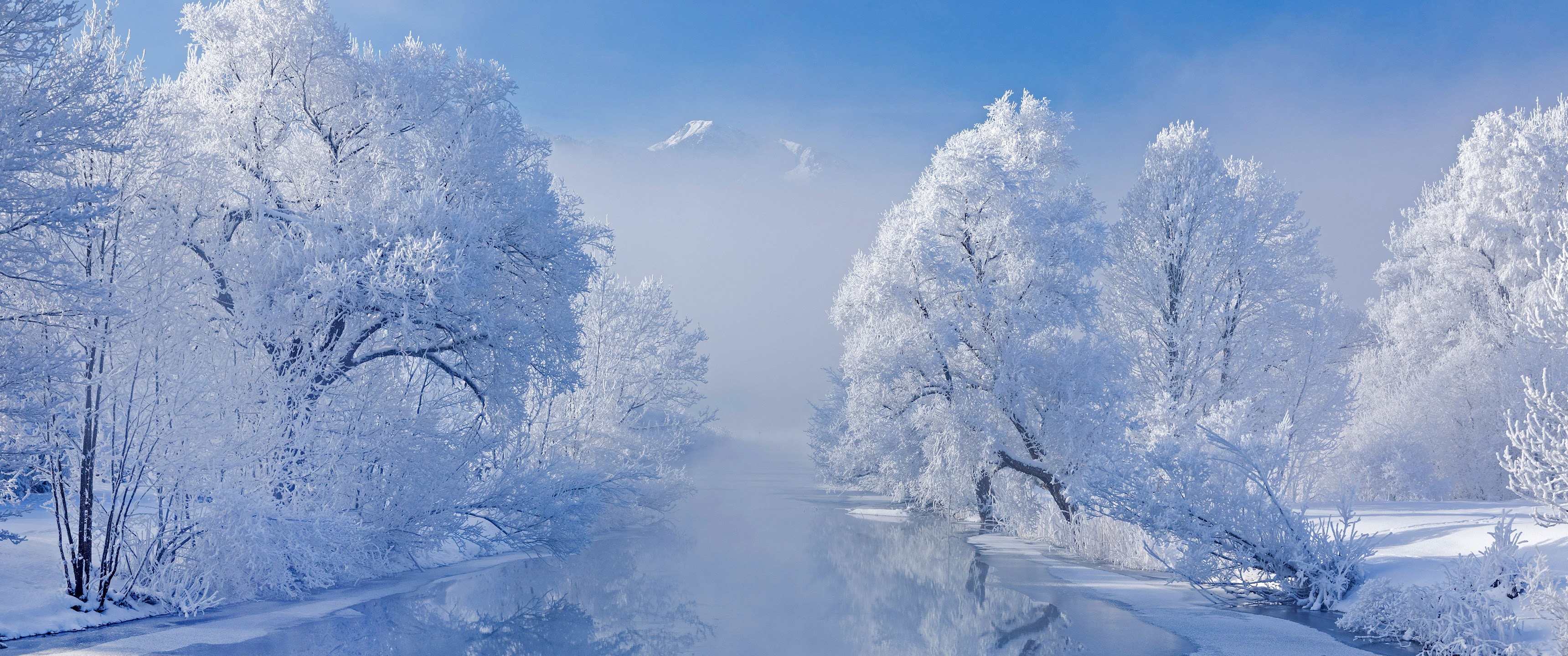 Frosted, River, Winter, Landscape 4K Wallpaper Background with a maximum resolution of 5889x3313 px.