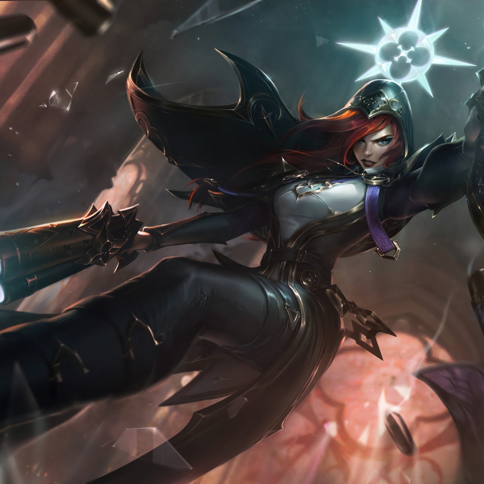 LOL League of Legends Bounty Hunter Miss Fortune Peerless Sanctuary 4k Wallpaper Background with a maximum resolution of 4608x2592 px for desktop and mobile phone.