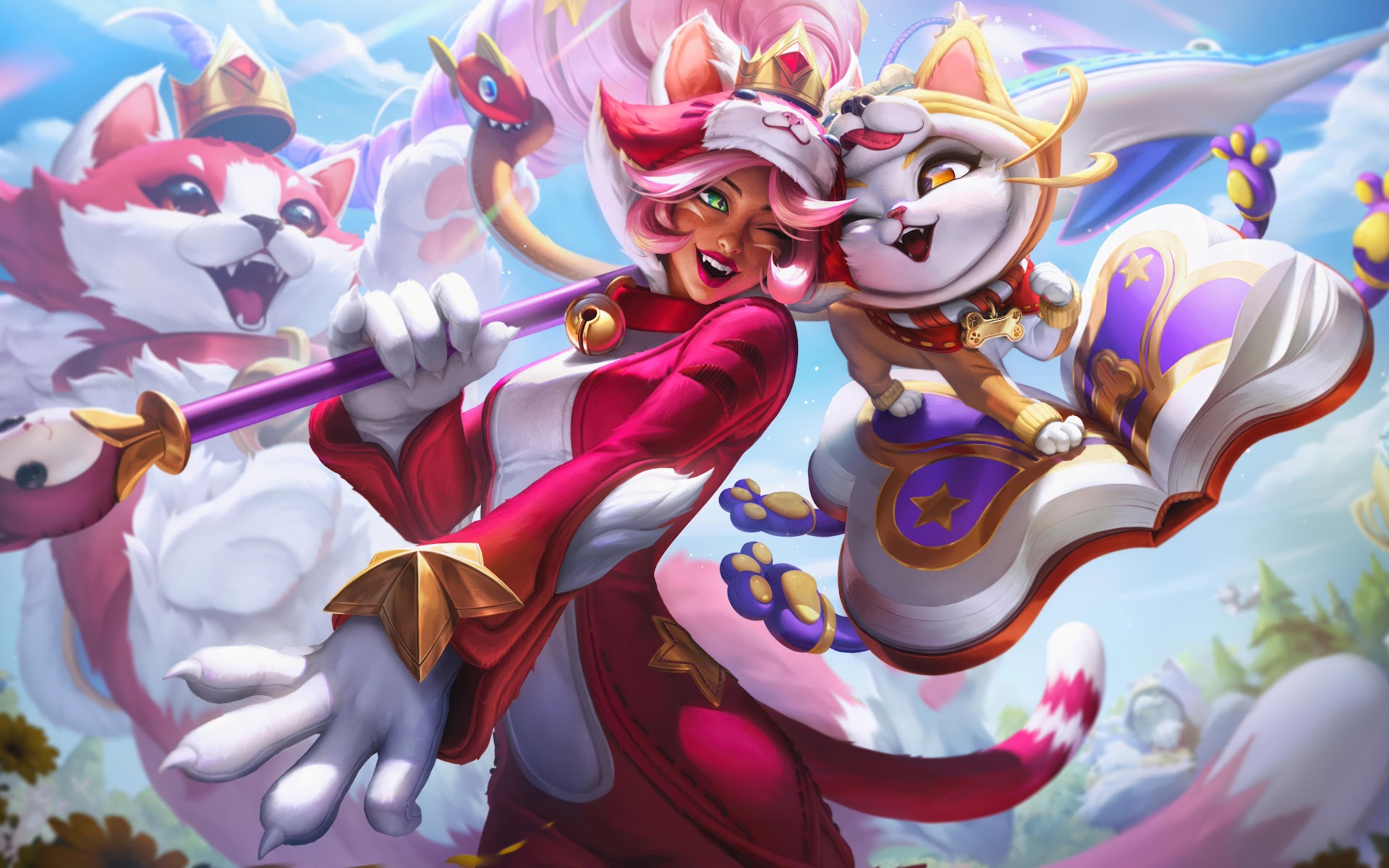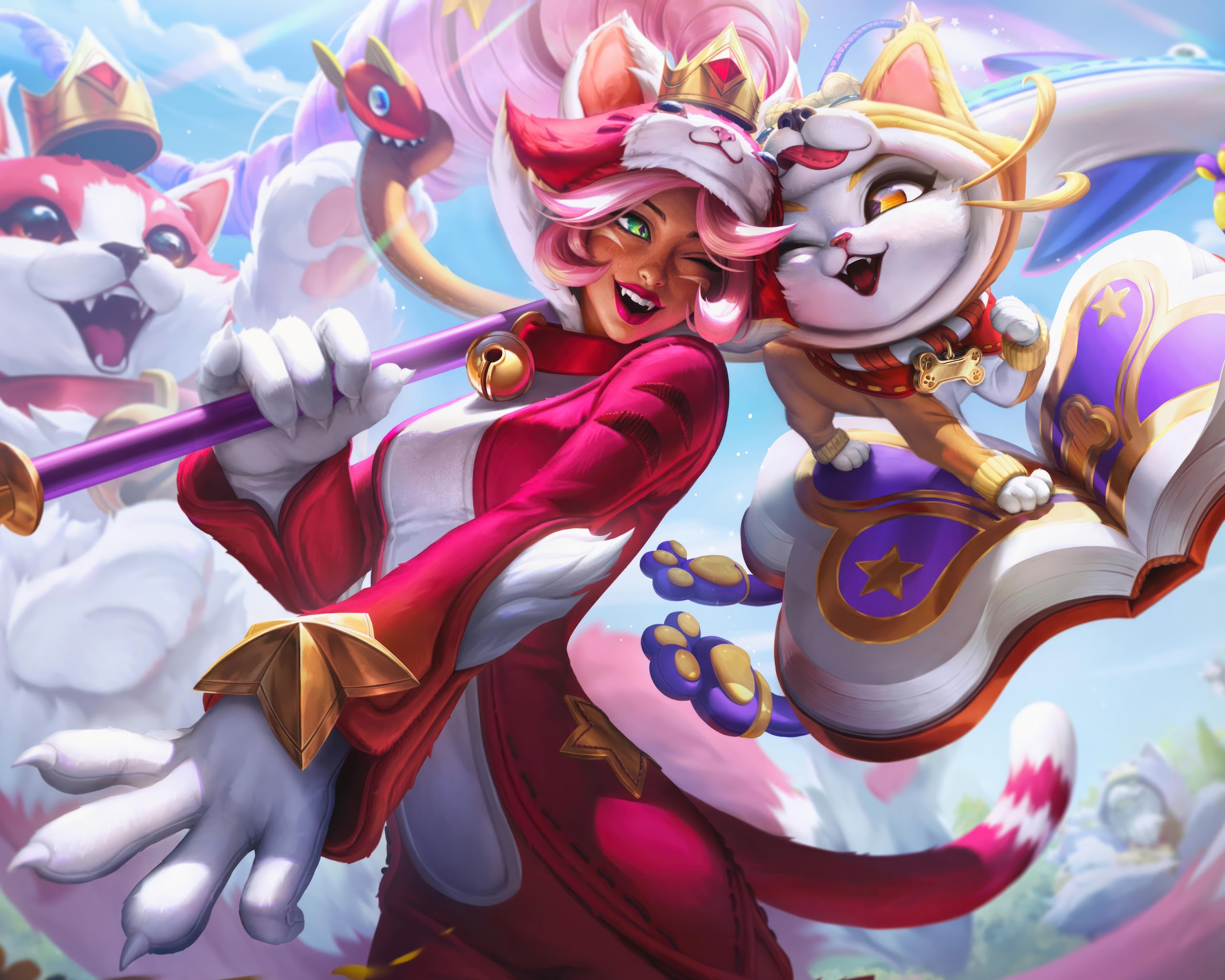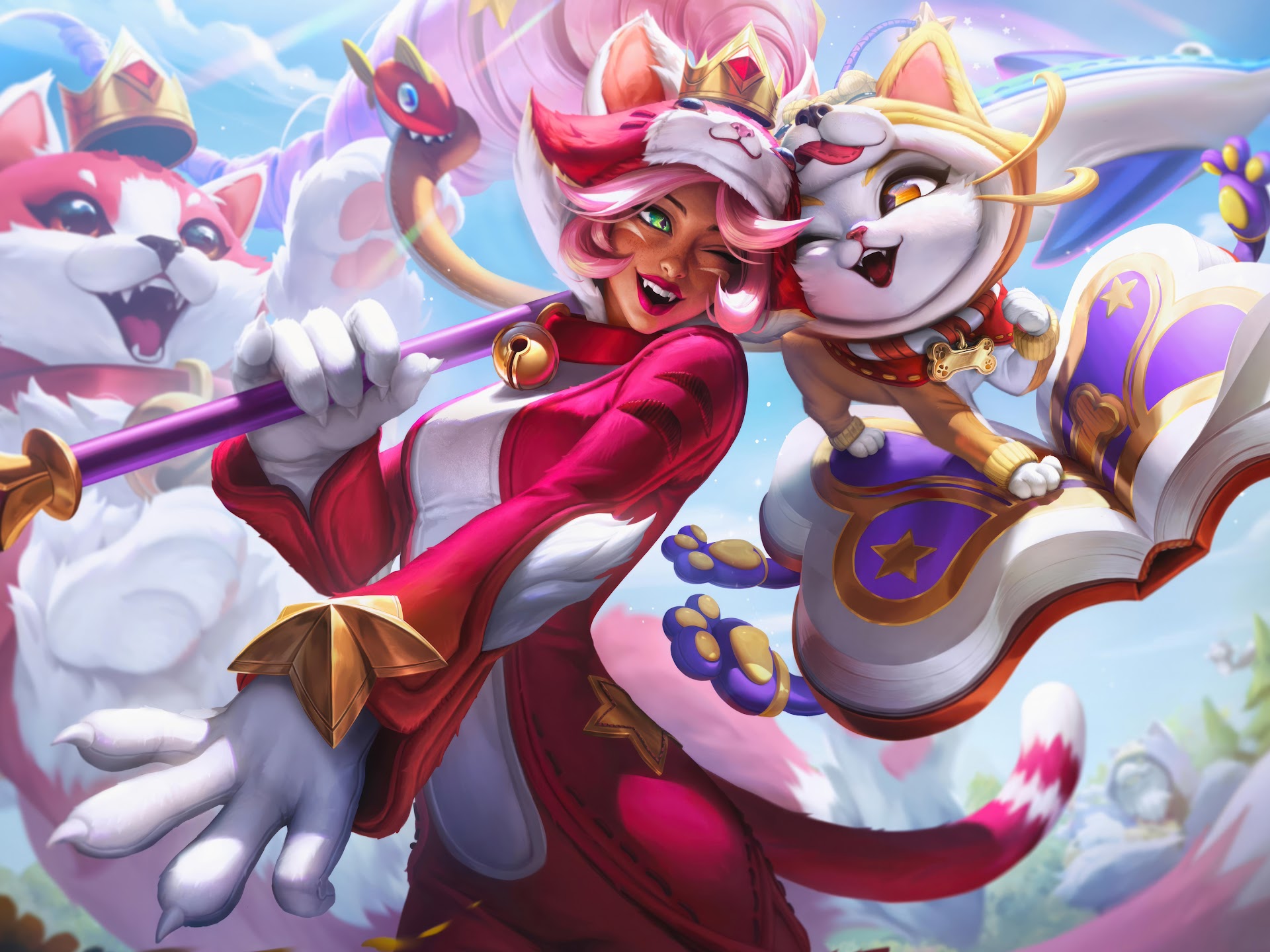 LOL League of Legends Magic Cat Yumi Yuumi Doghead Cat Wild Huntress Nedley Nidalee Meow Mighty 4K Wallpaper Background with a maximum resolution of 4608x2592 px for desktop and mobile phone.