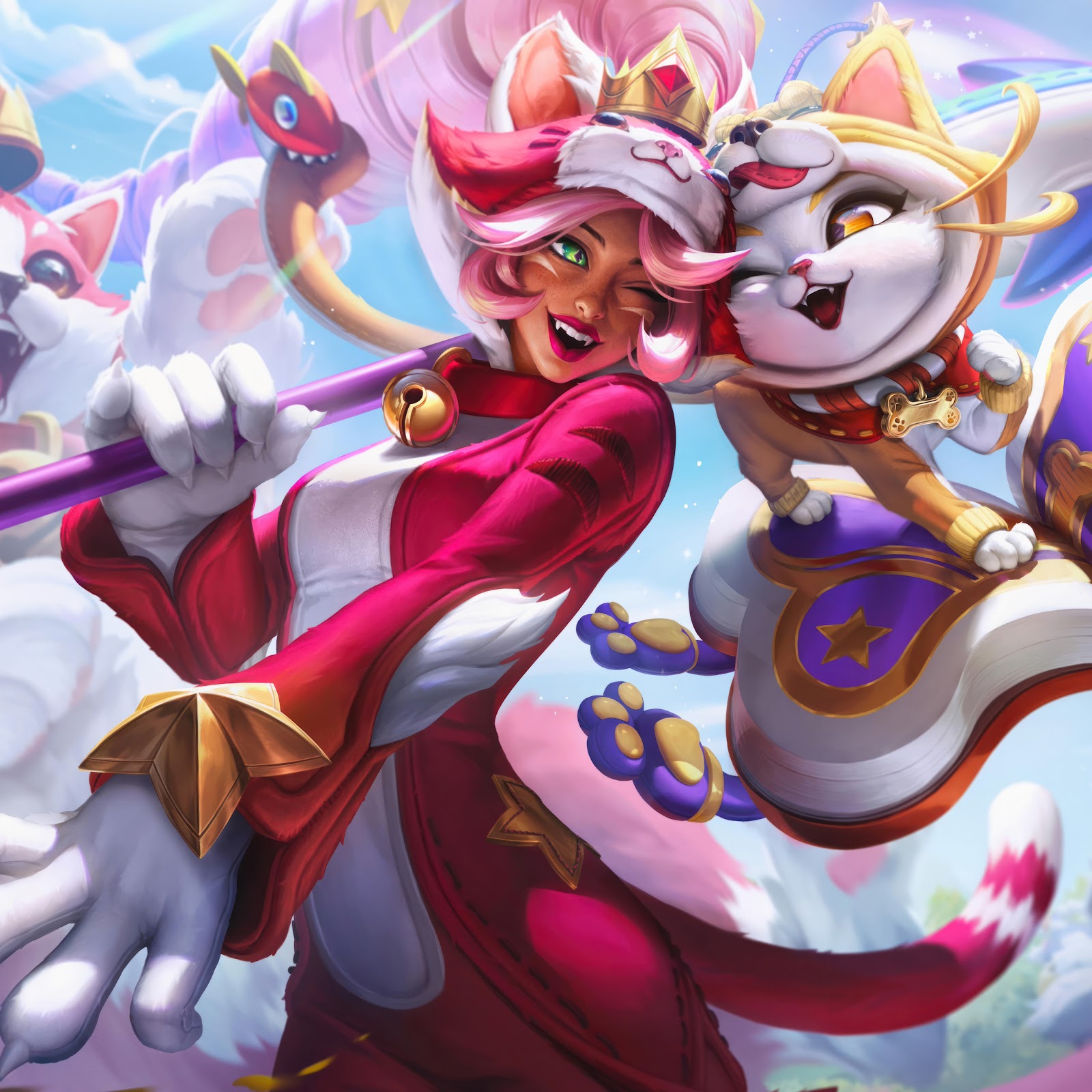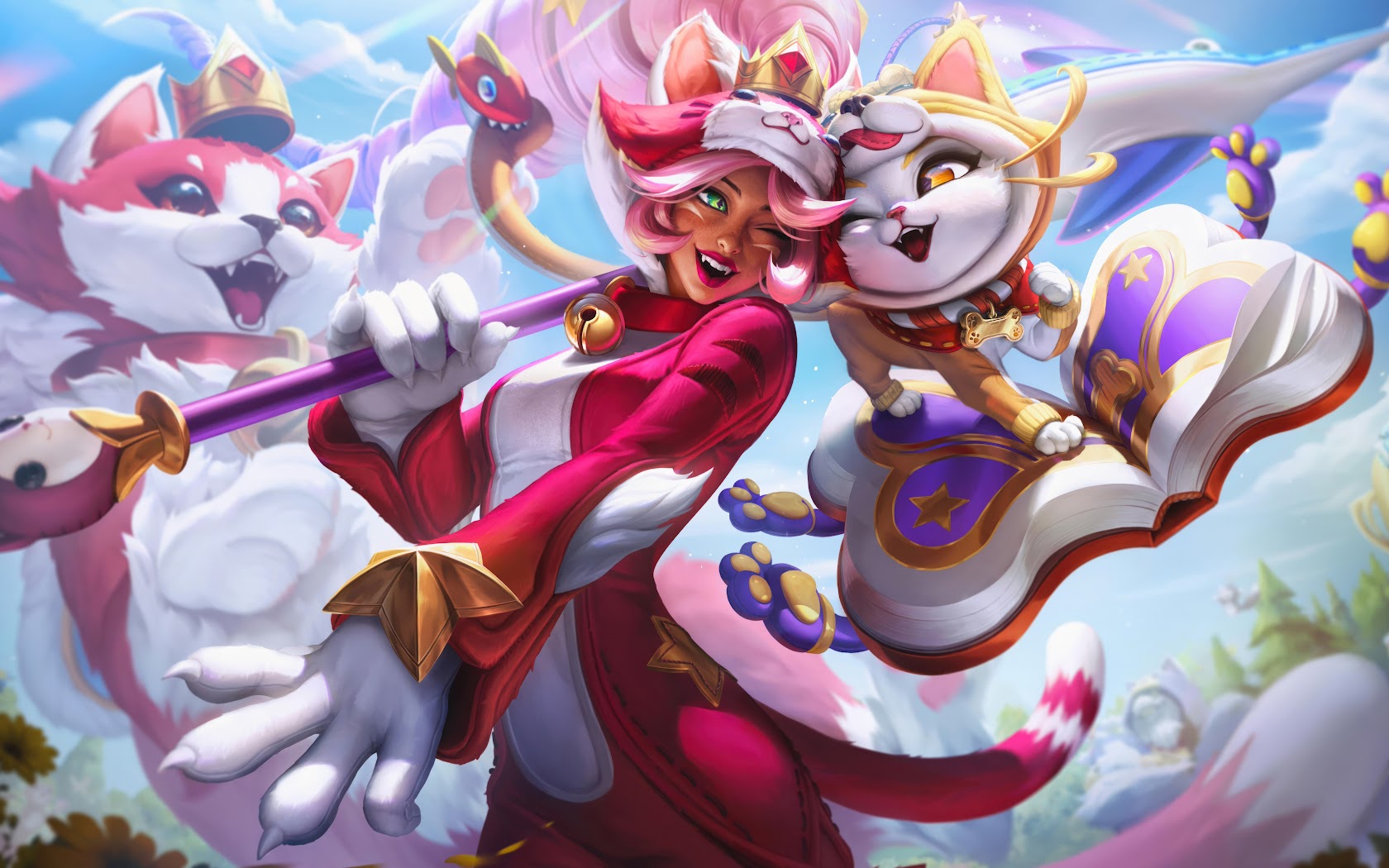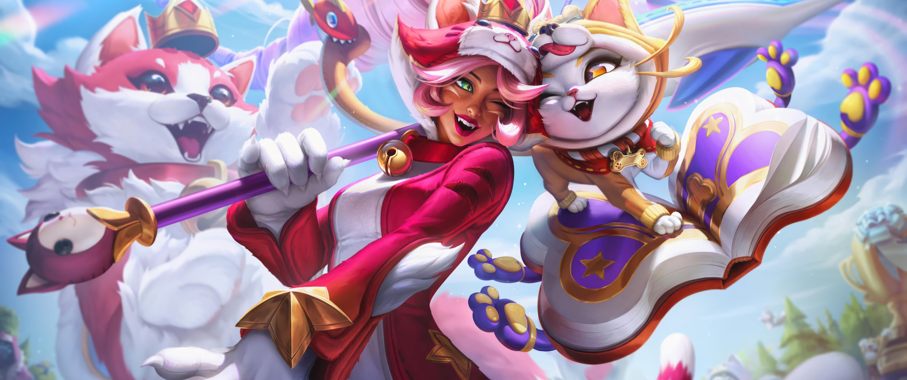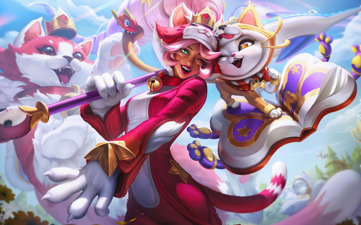LOL League of Legends Magic Cat Yumi Yuumi Doghead Cat Wild Huntress Nedley Nidalee Meow Mighty 4K Wallpaper Background with a maximum resolution of 4608x2592 px for desktop and mobile phone.