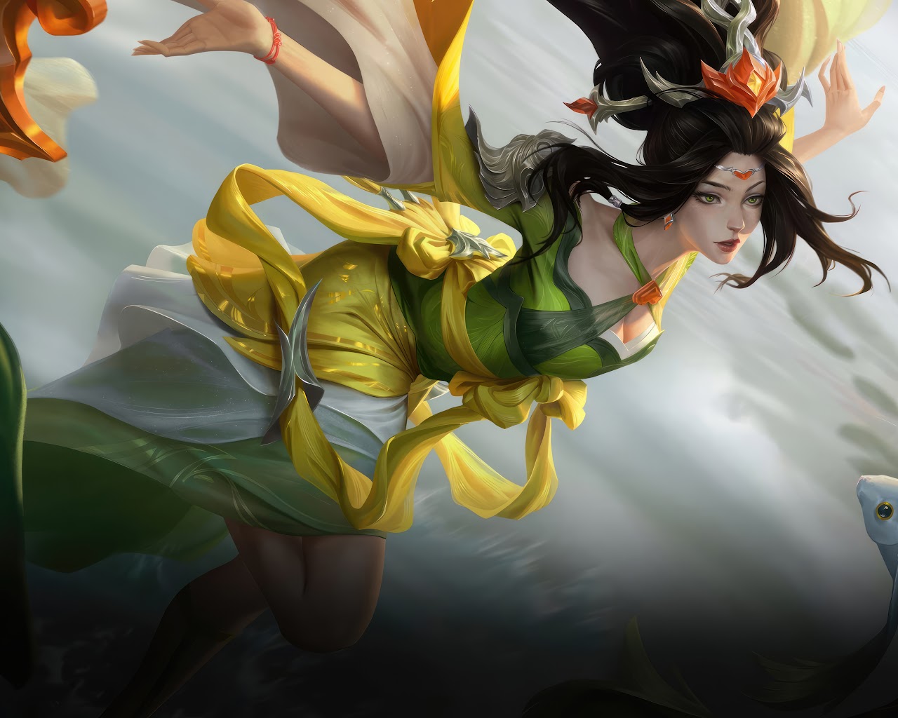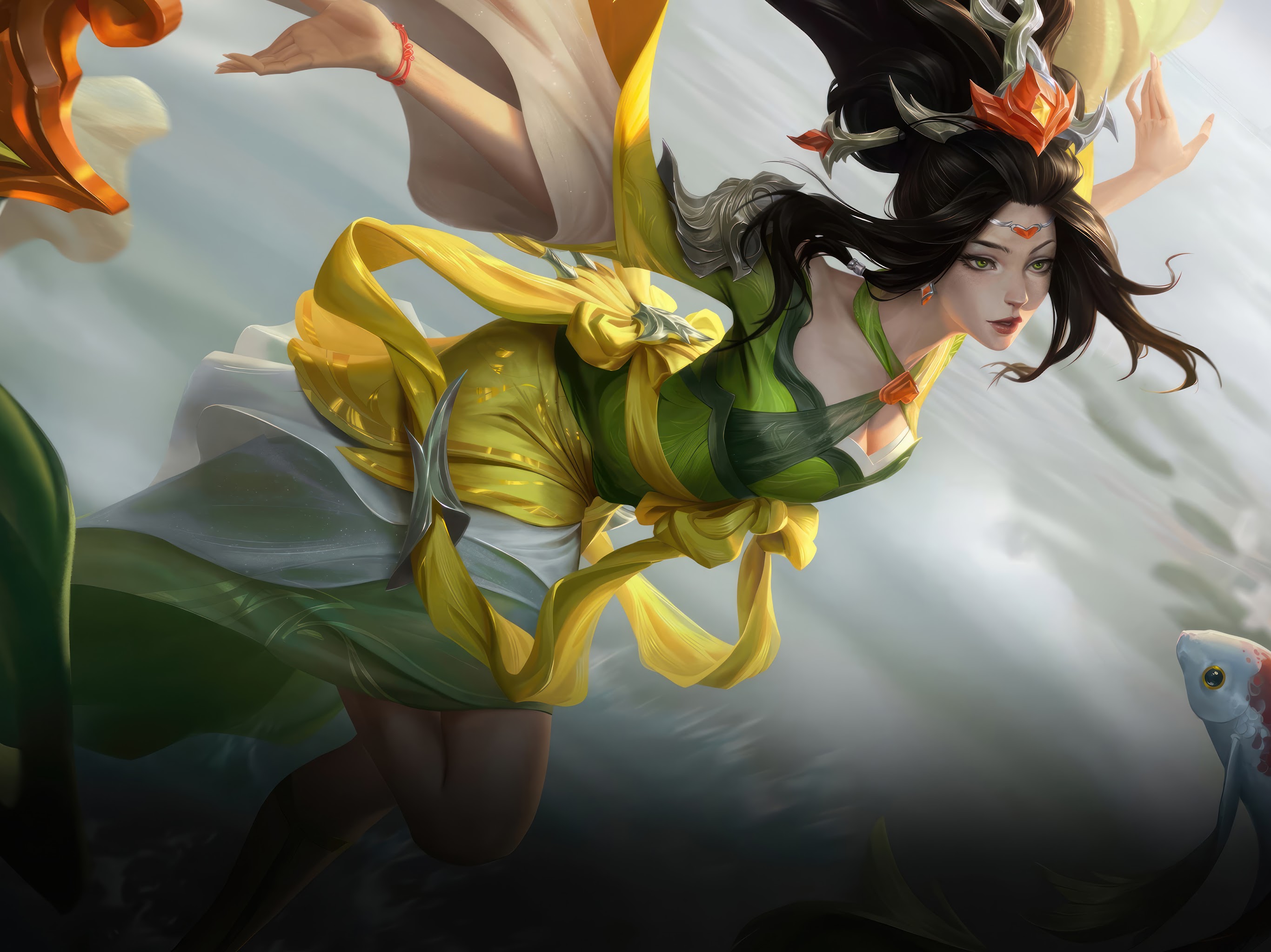 League of Legends, Fantasy, Female, Character, Koi 4K Wallpaper Background with a maximum resolution of 4608x2592 px.