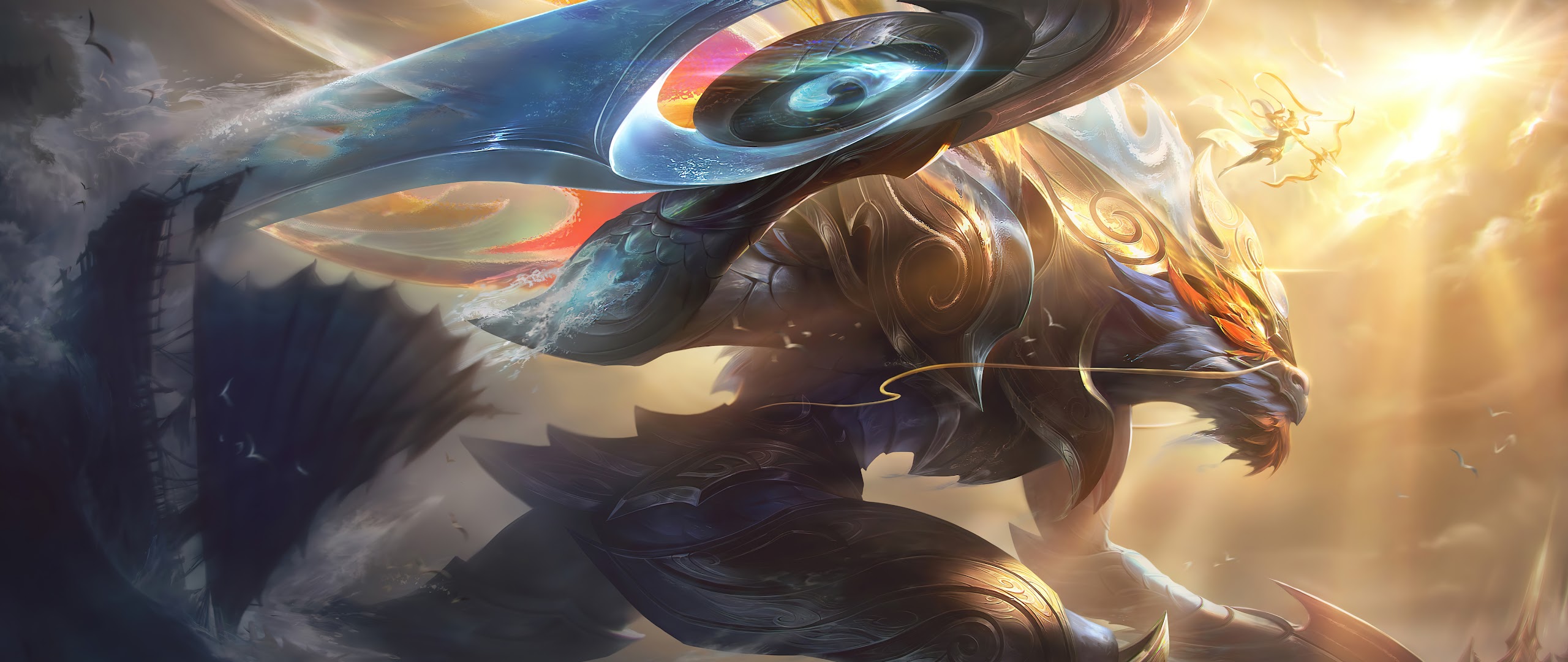 League of Legends, Aurelion Sol, Celestial, Dragon 4K Wallpaper Background with a maximum resolution of 4608x2592 px.