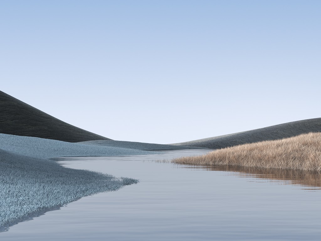 Windows, Minimalist, Landscape, River, Hills 4K Wallpaper Background