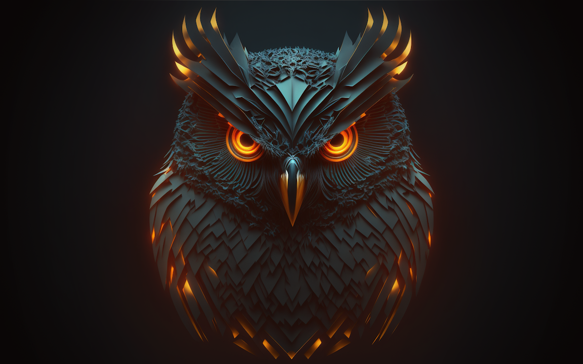 Owl, Glowing, Geometric, Dark, Fantasy 4K Desktop Wallpaper