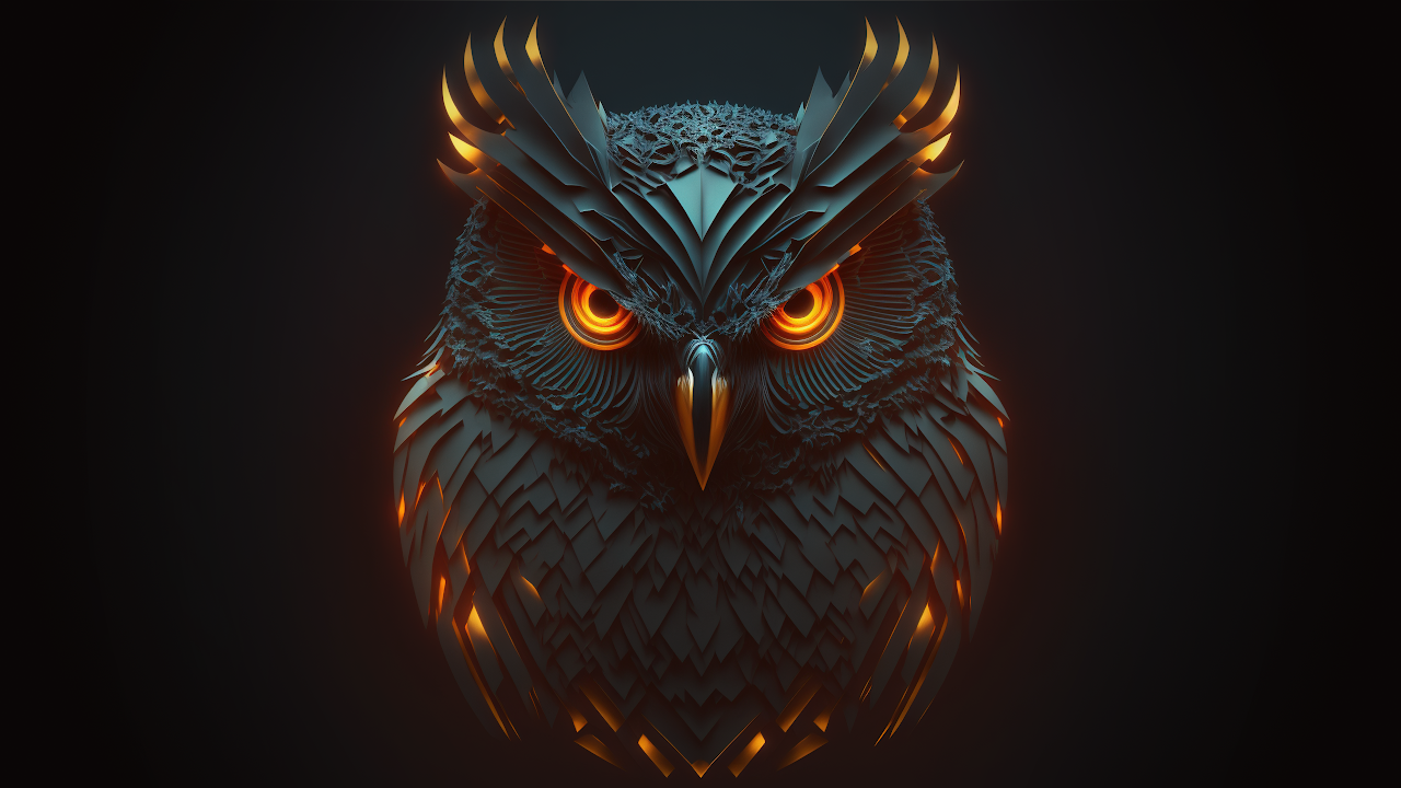 Owl, Glowing, Geometric, Dark, Fantasy 4K Wallpaper Background with a maximum resolution of 3840x2160 px.