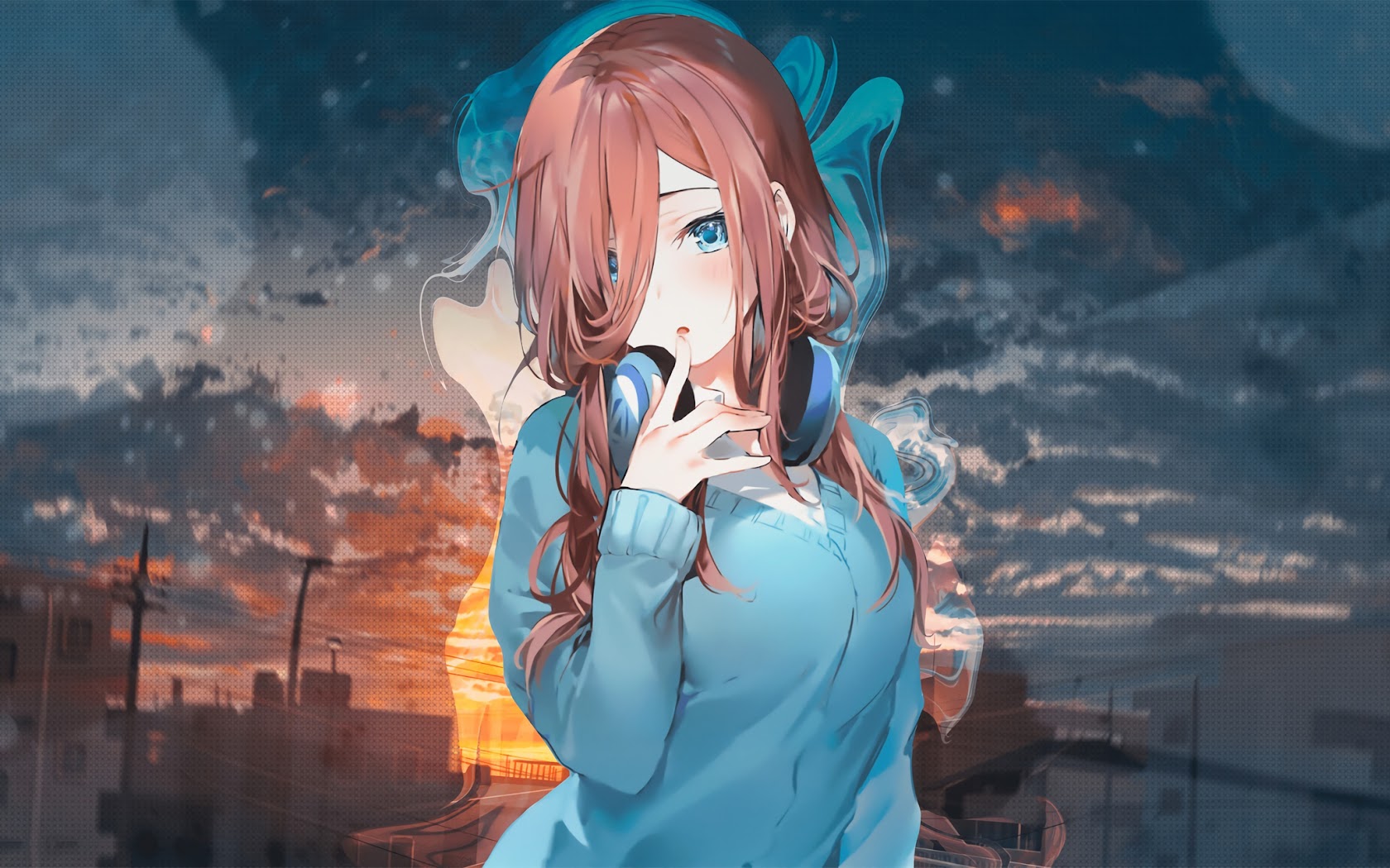 Miku, Anime, Quintessential, Headphones Full HD Desktop Wallpaper