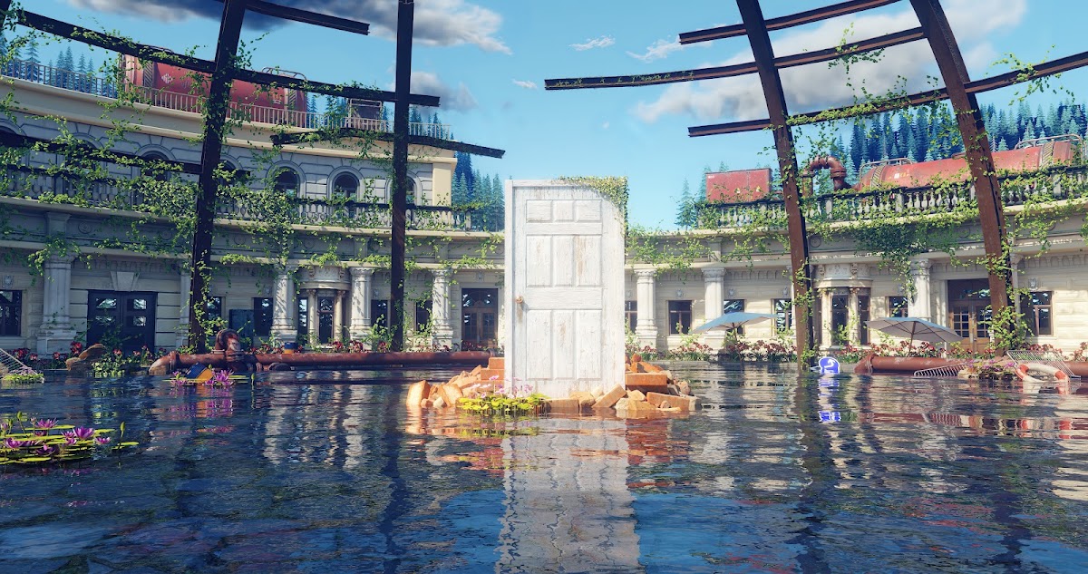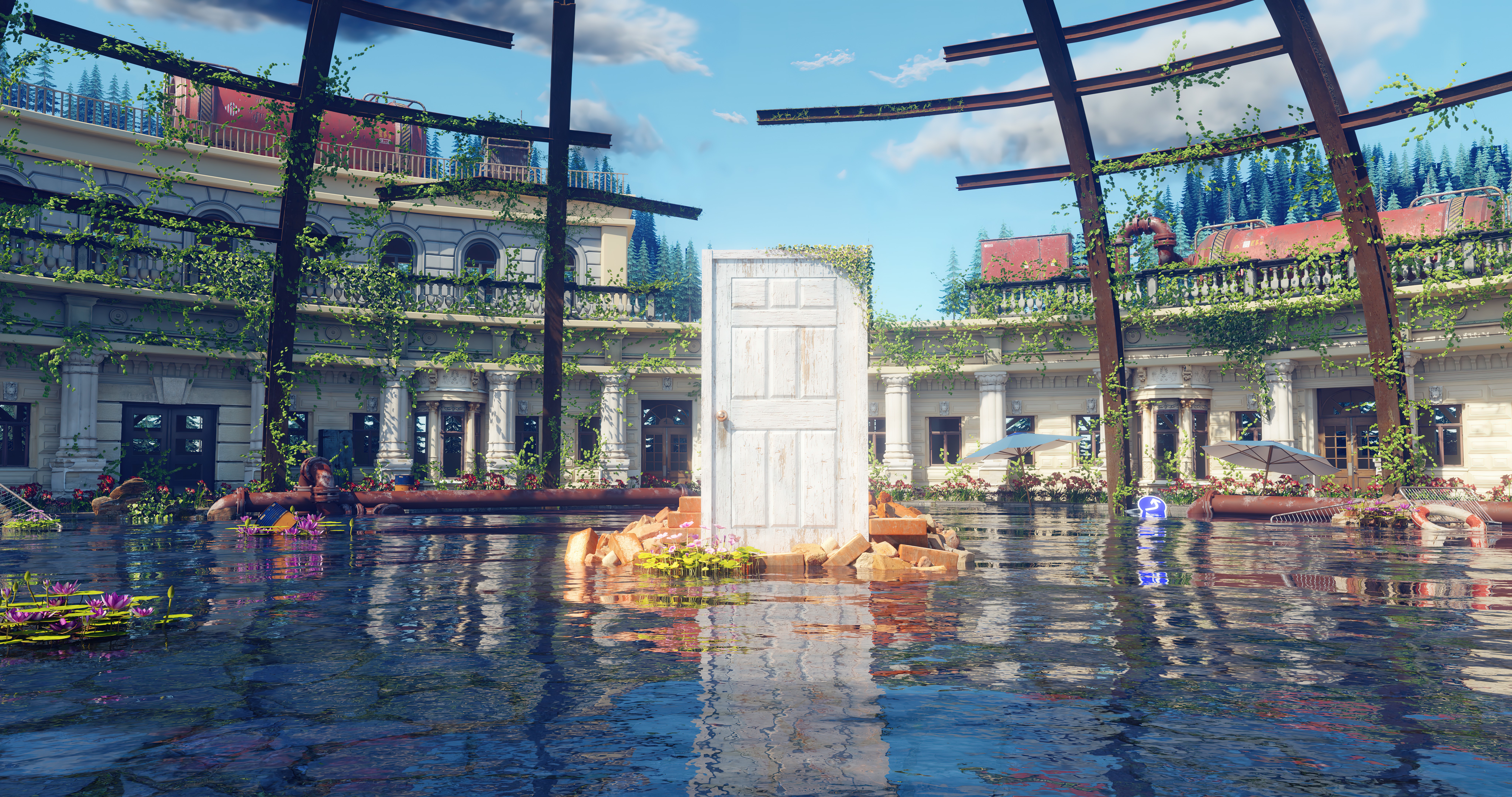 Flooded, Mansion, Doorway, Overgrown 8K Desktop Wallpaper