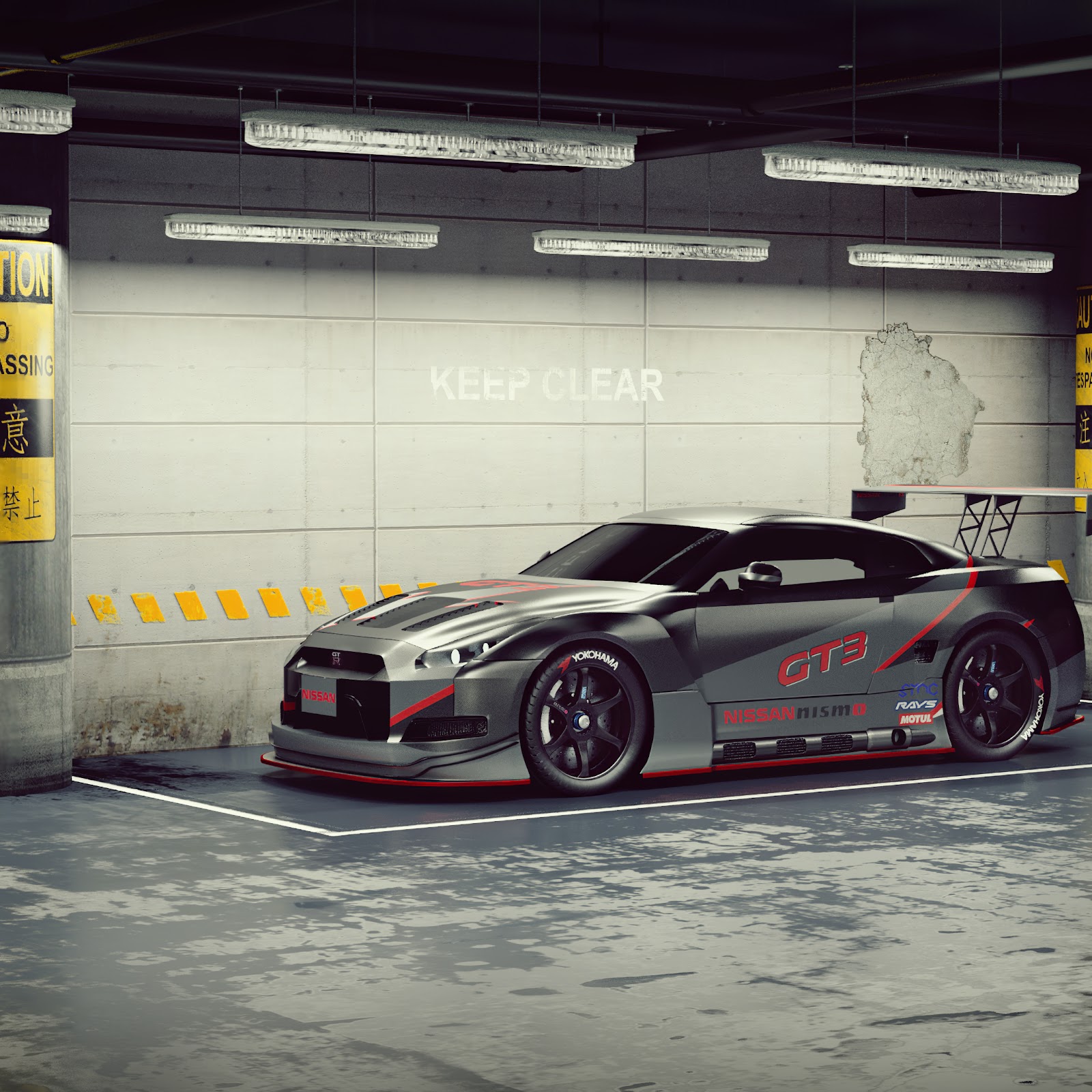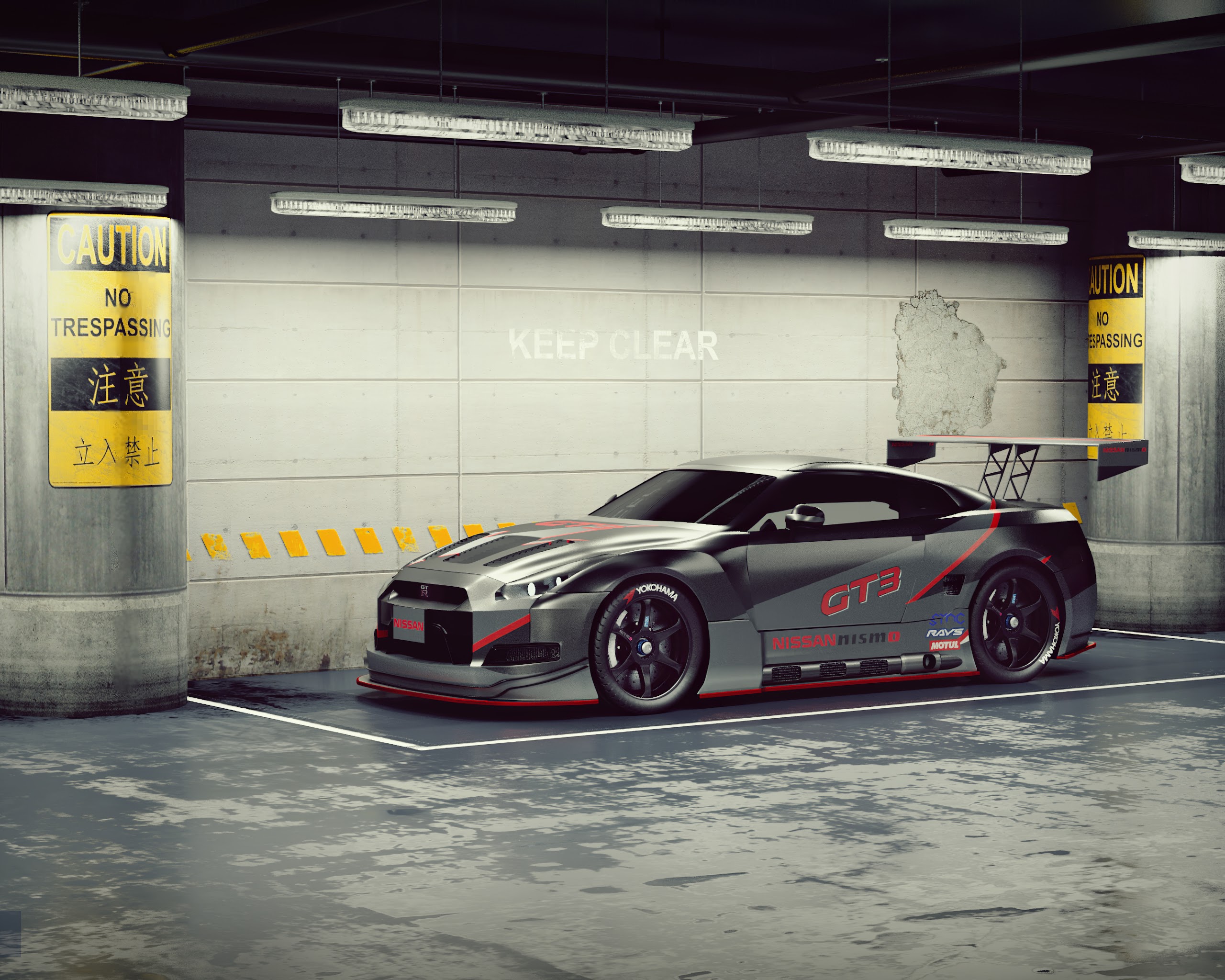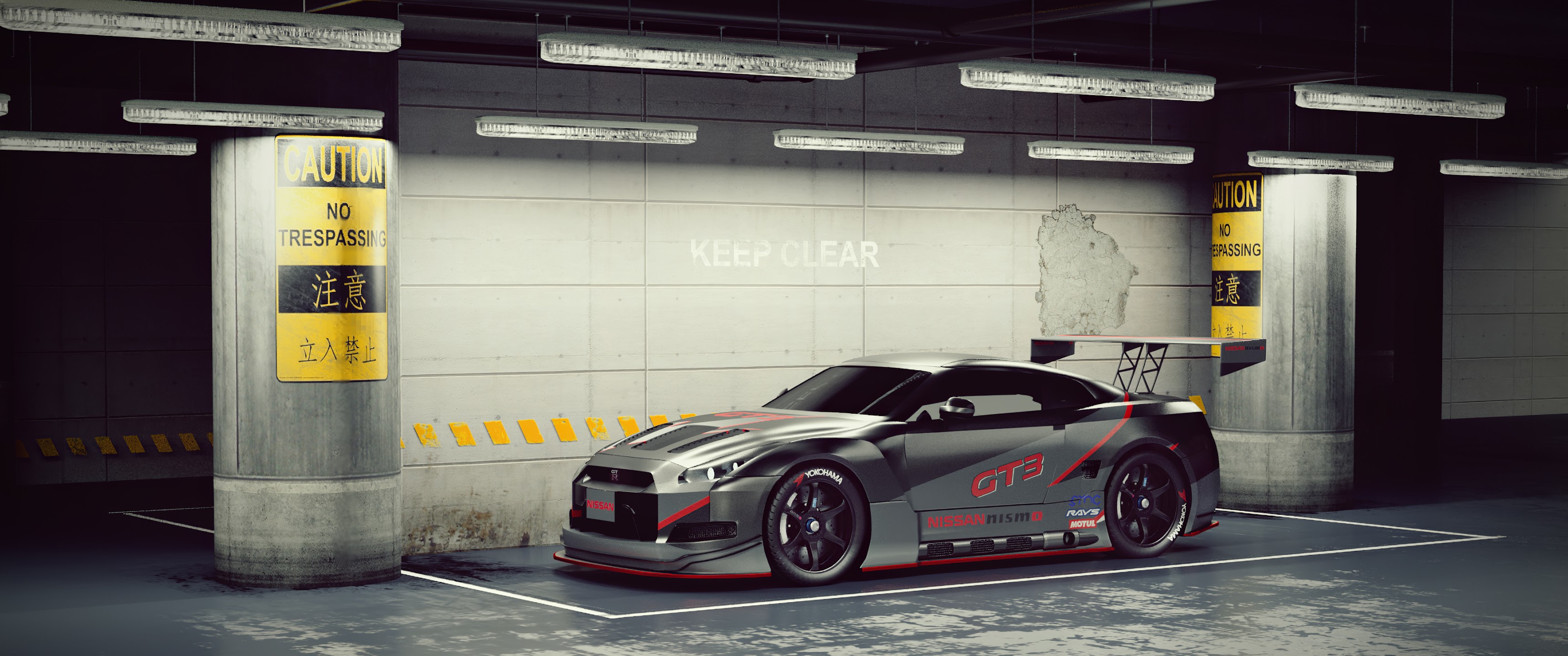 Nissan GTR, Parking Garage, GT3, Nismo 4K Desktop Wallpaper