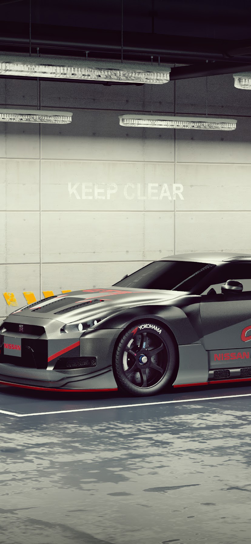 Nissan GTR, Parking Garage, GT3, Nismo 4K Phone Wallpaper
