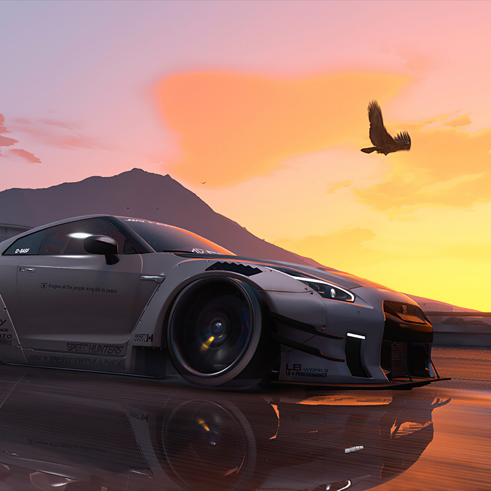 Nissan GTR, Modified, Sunset, Car Full HD Phone Wallpaper