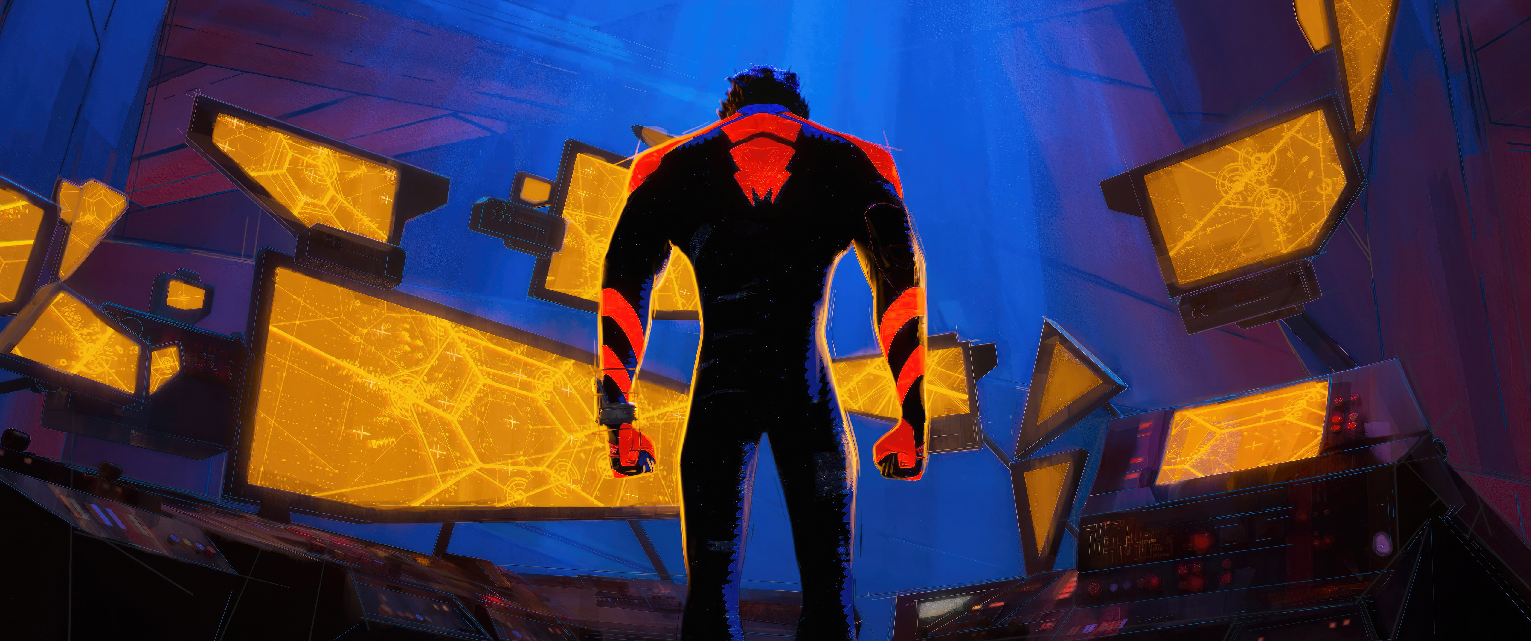Spider-Man 2099 In Spider-Man: Across The Spider-Verse 5K Wallpaper Background with a maximum resolution of 5120x2145 px.
