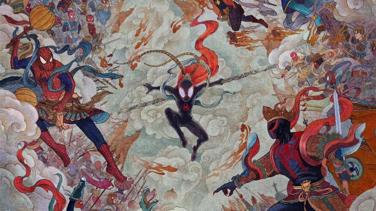 Spider-Man: Across The Spider-Verse Chinese Poster 5K Wallpaper Background with a maximum resolution of 6000x3375 px.