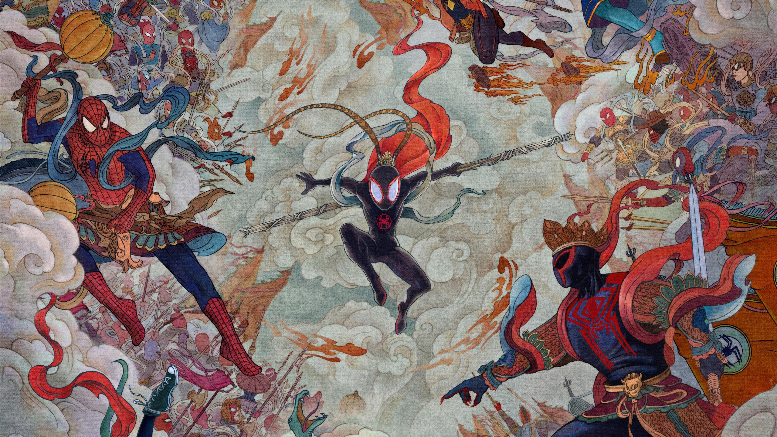 Spider-Man: Across The Spider-Verse Chinese Poster 5K Wallpaper Background with a maximum resolution of 6000x3375 px.
