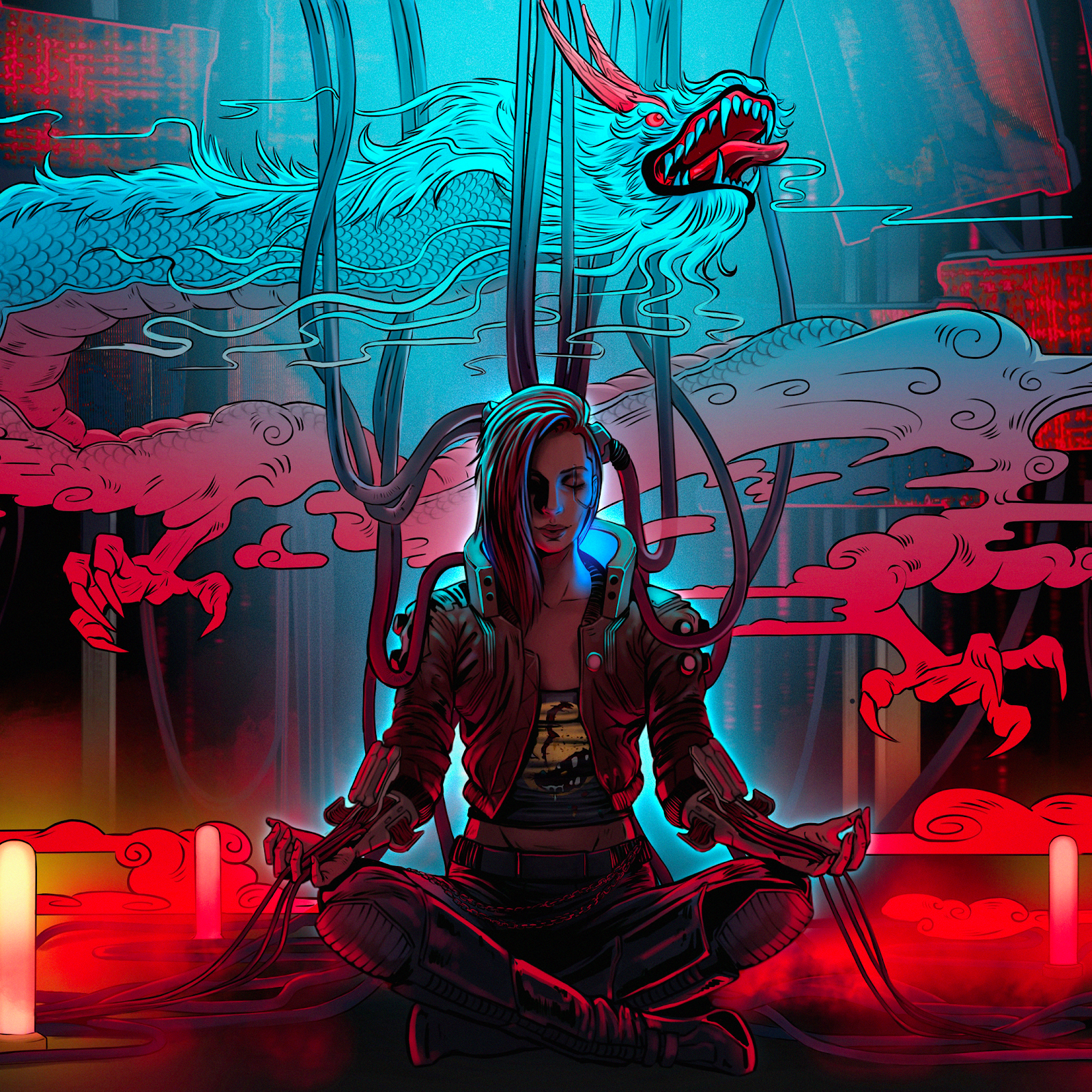 Cyberpunk, Cyberpunk 2077 Phantom Liberty, Red, Digital Art, Games, Meditation, Dragon, 4K Desktop Wallpaper