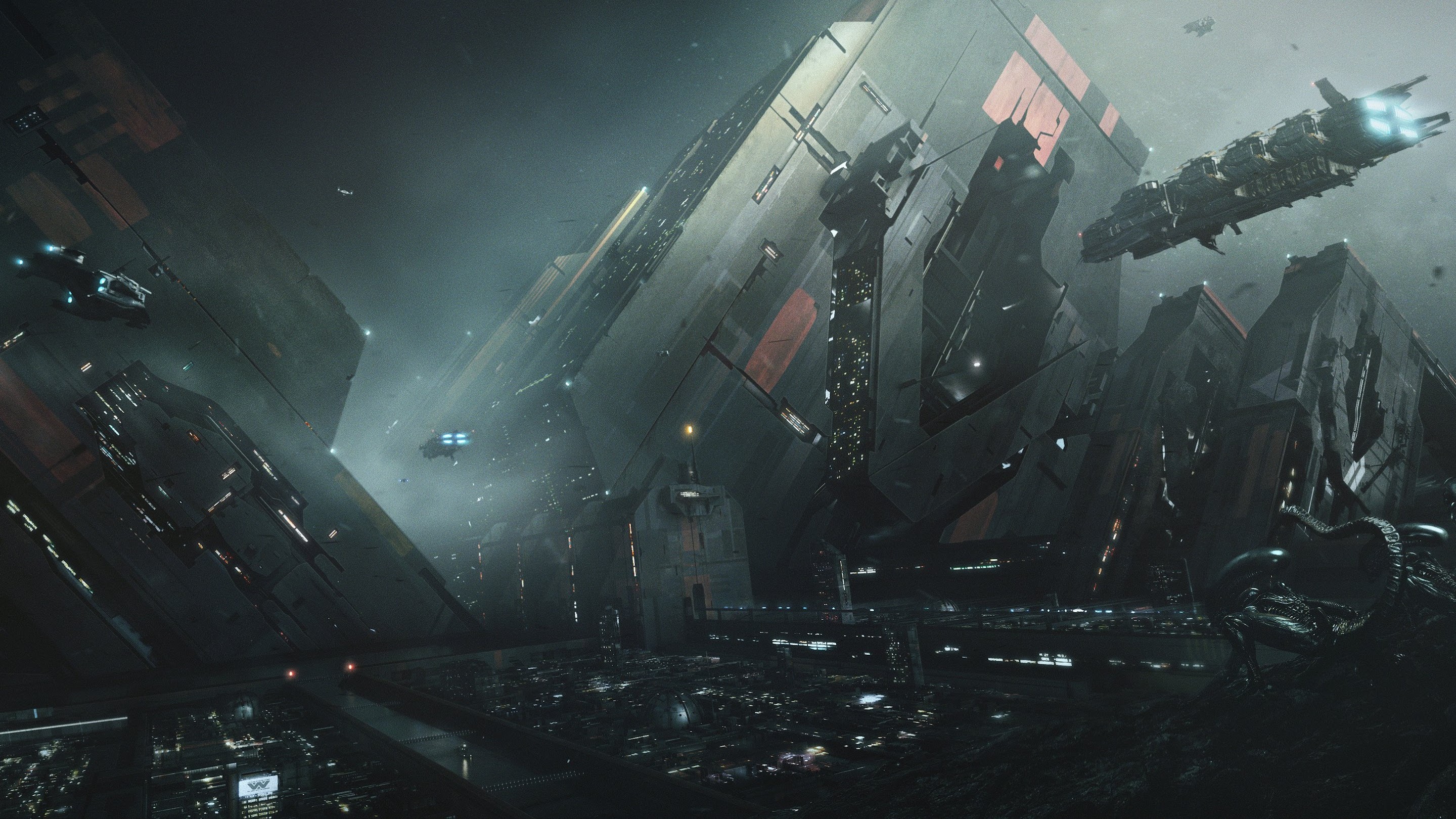 Space, Space Station, Spaceship, Aliens 2K Desktop Wallpaper