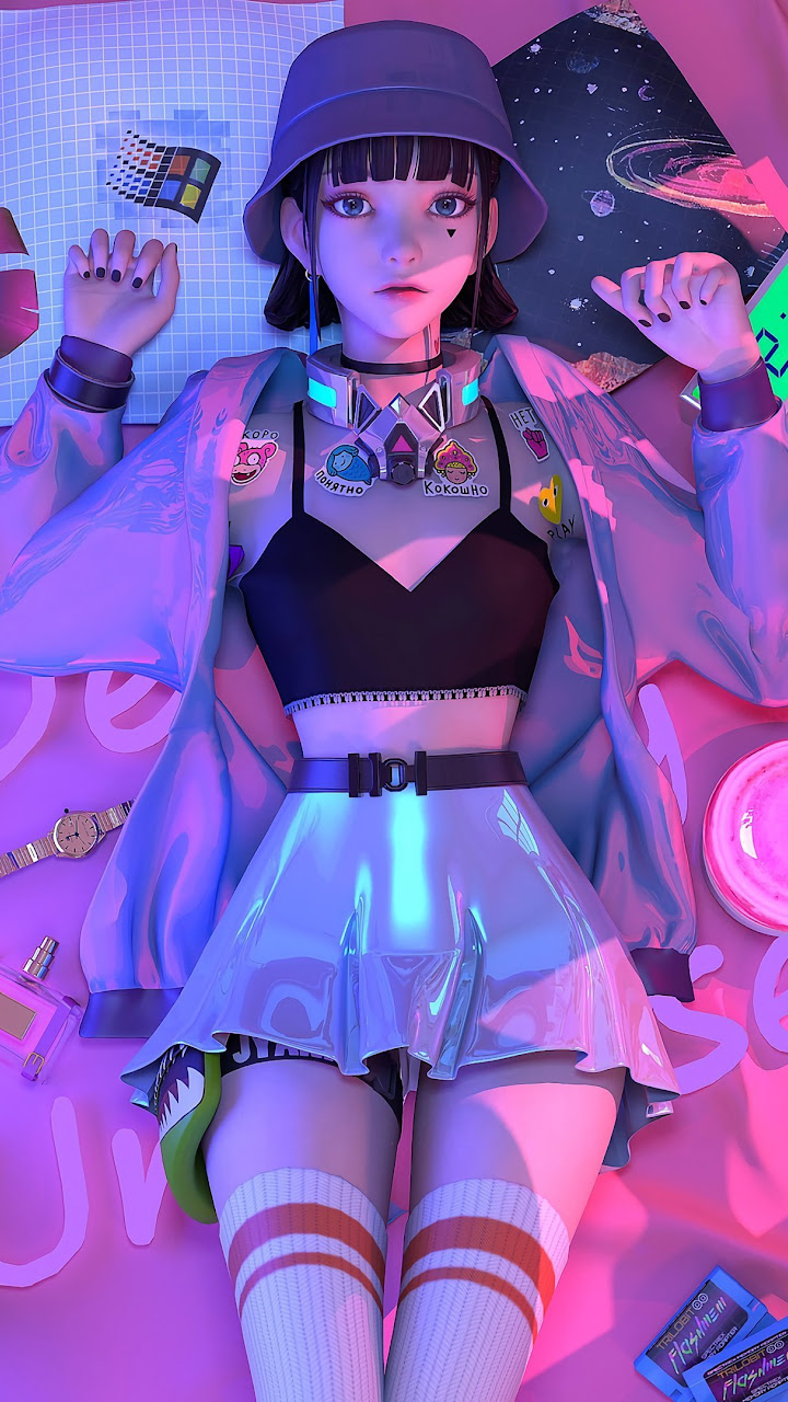 Anime Girls, Lying On Back, Polaroid, In Bed, Retro Style 4K Wallpaper Background with a maximum resolution of 3840x2160 px.