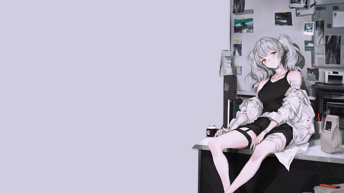 Anime Girls, Original Characters, Minimalism, White Hair, Red Eyes 4K Wallpaper Background with a maximum resolution of 3840x2160 px.
