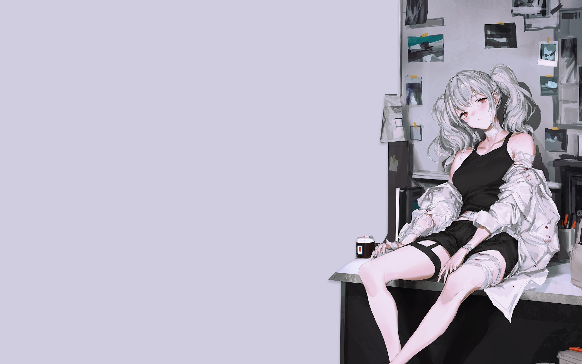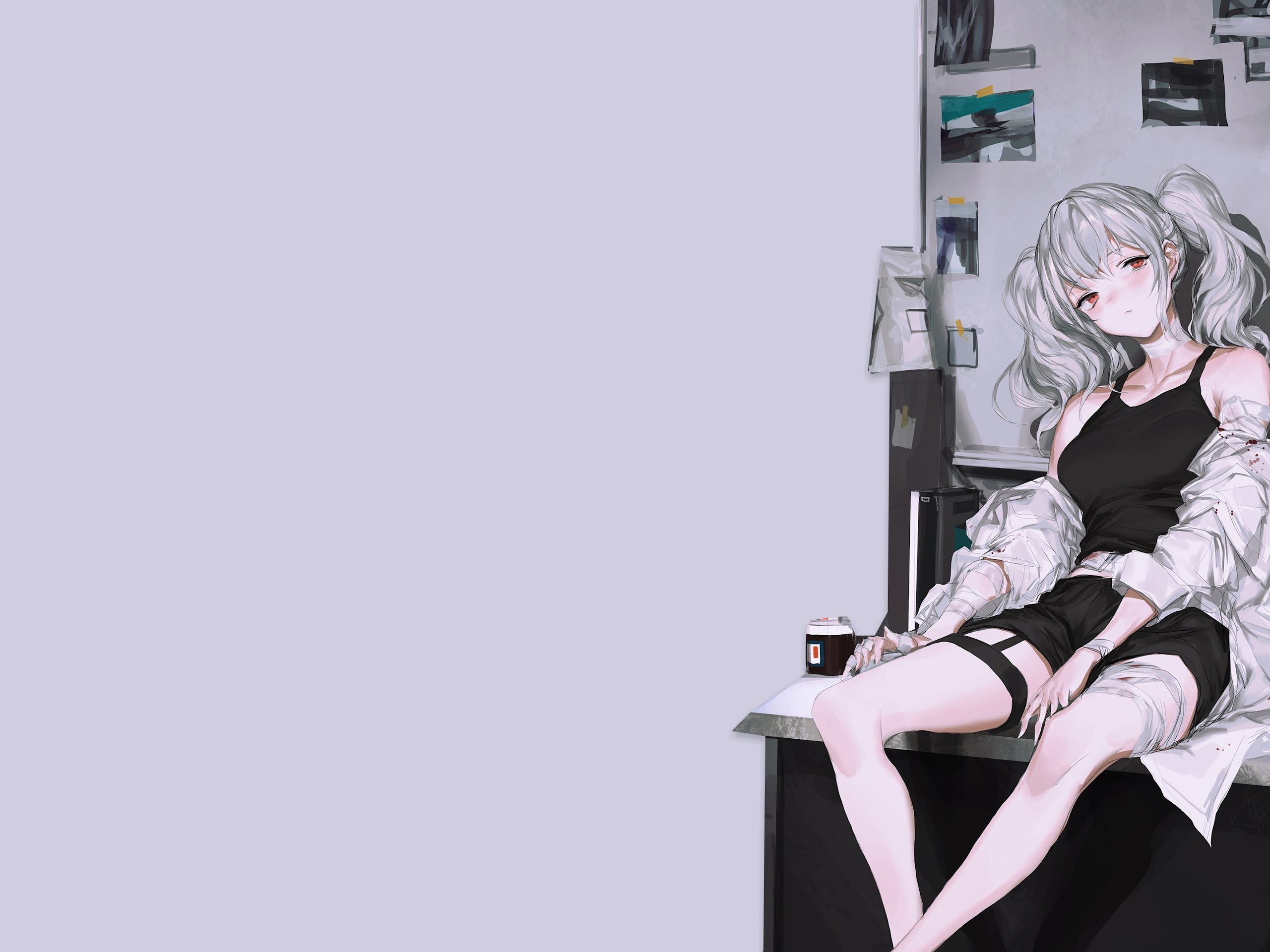 Anime Girls, Original Characters, Minimalism, White Hair, Red Eyes 4K Desktop Wallpaper