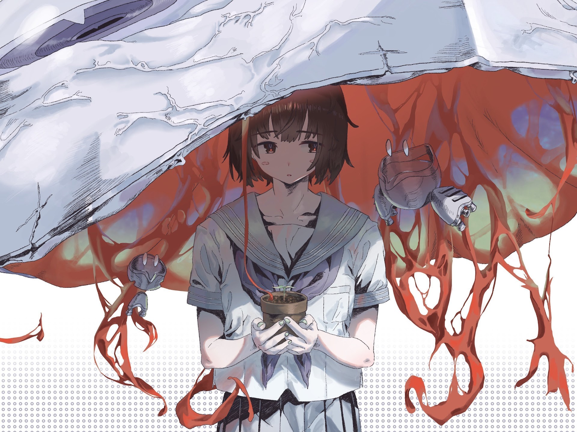 Anime Girls, Umbrella, Creature, Standing, Schoolgirl 4K Desktop, iPhone Wallpaper Background