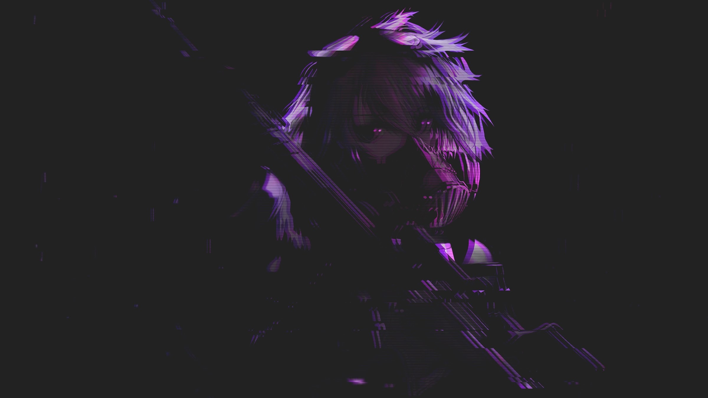 Anime, Women, Purple Hair, Purple Clothing, Black 4K Wallpaper Background with a maximum resolution of 3840x2160 px.