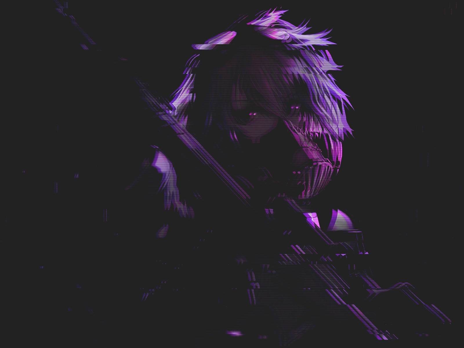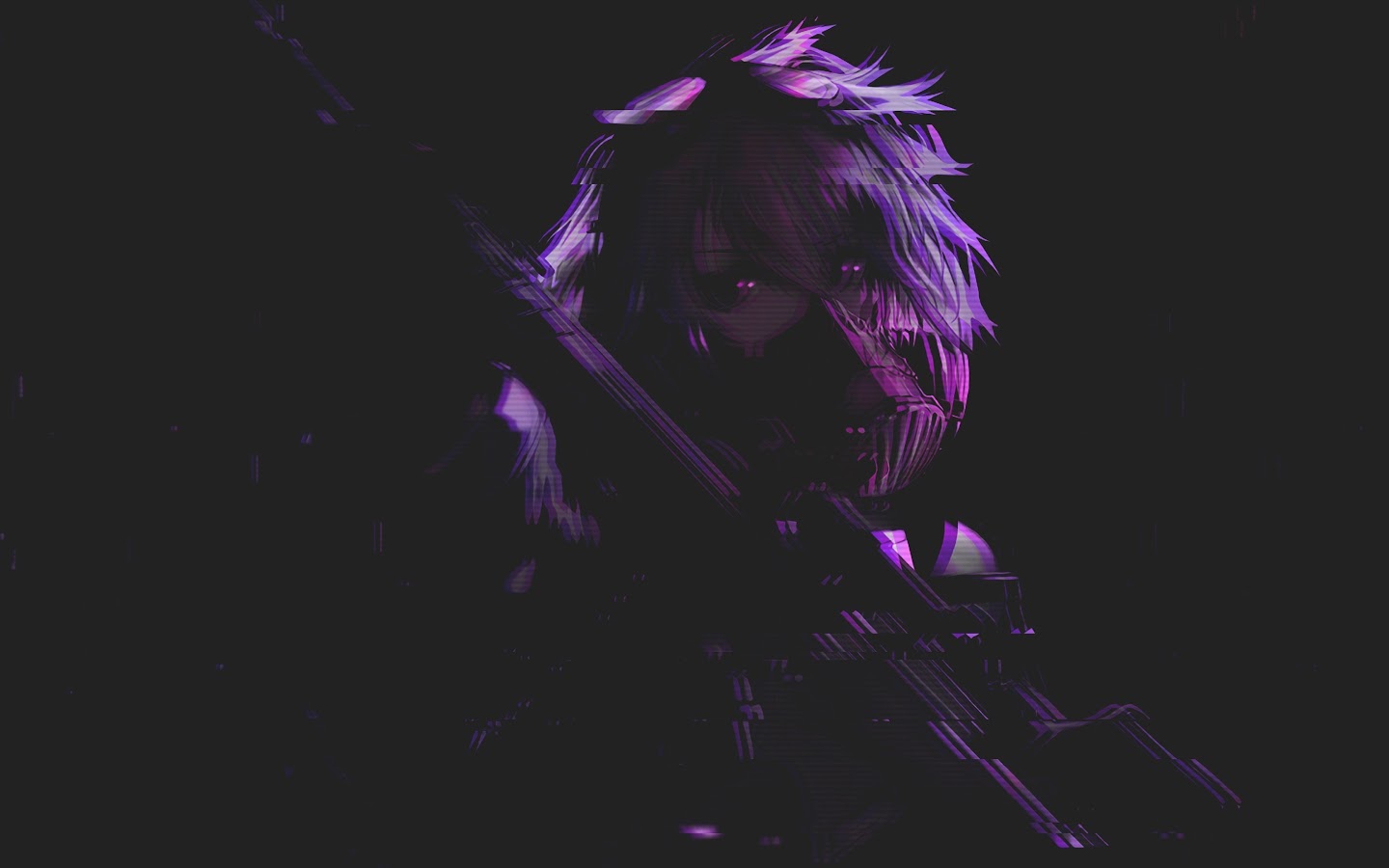 Anime, Women, Purple Hair, Purple Clothing, Black 4K Wallpaper Background with a maximum resolution of 3840x2160 px.