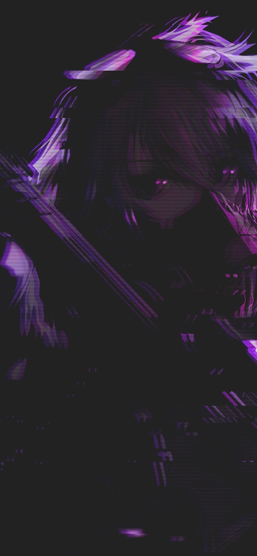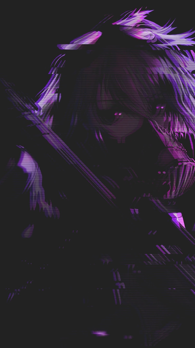 Anime, Women, Purple Hair, Purple Clothing, Black 4K Phone Wallpaper
