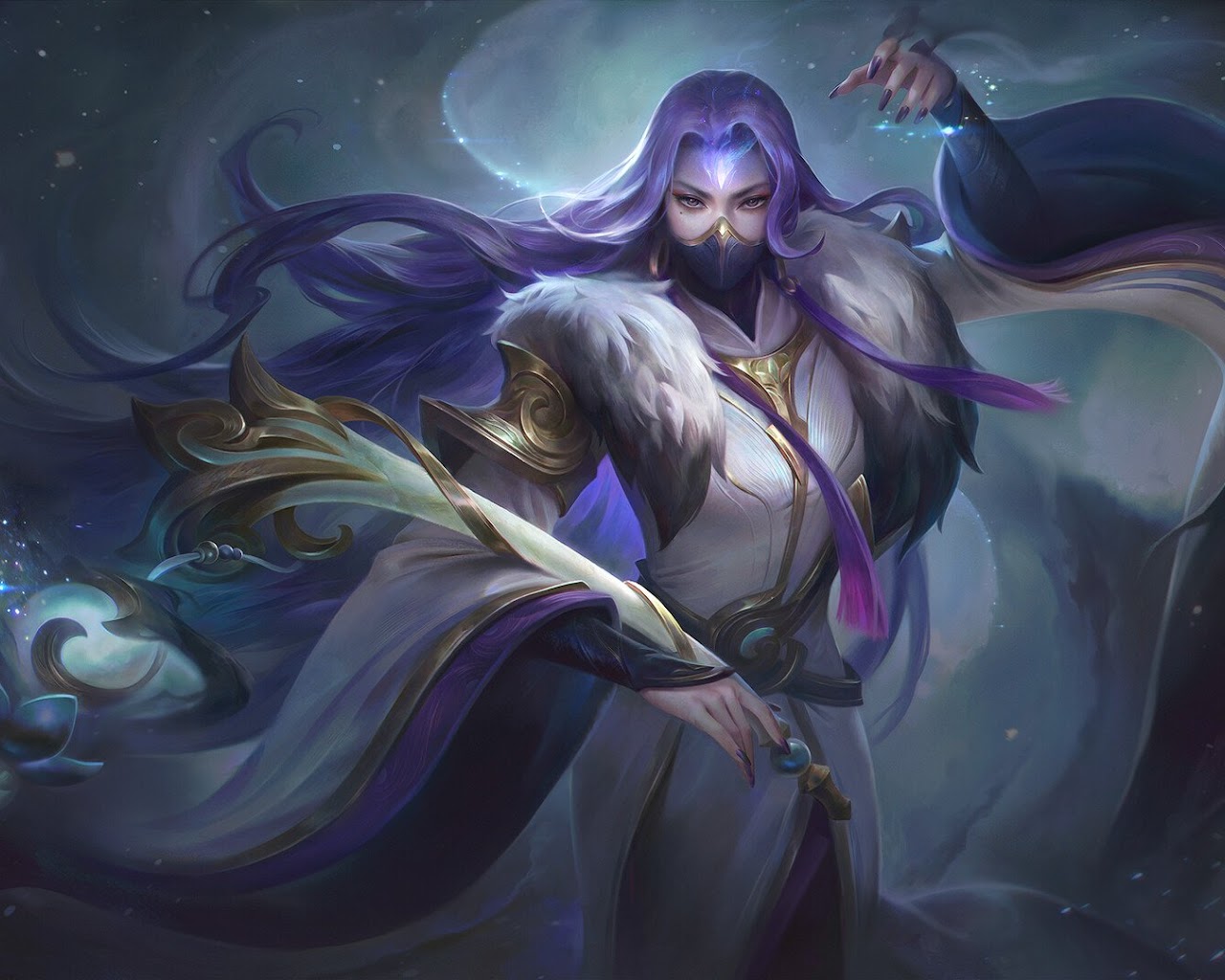 Arc Noir, Drawing, Women, Purple Hair, Mask Full HD Wallpaper Background with a maximum resolution of 1920x1080 px.