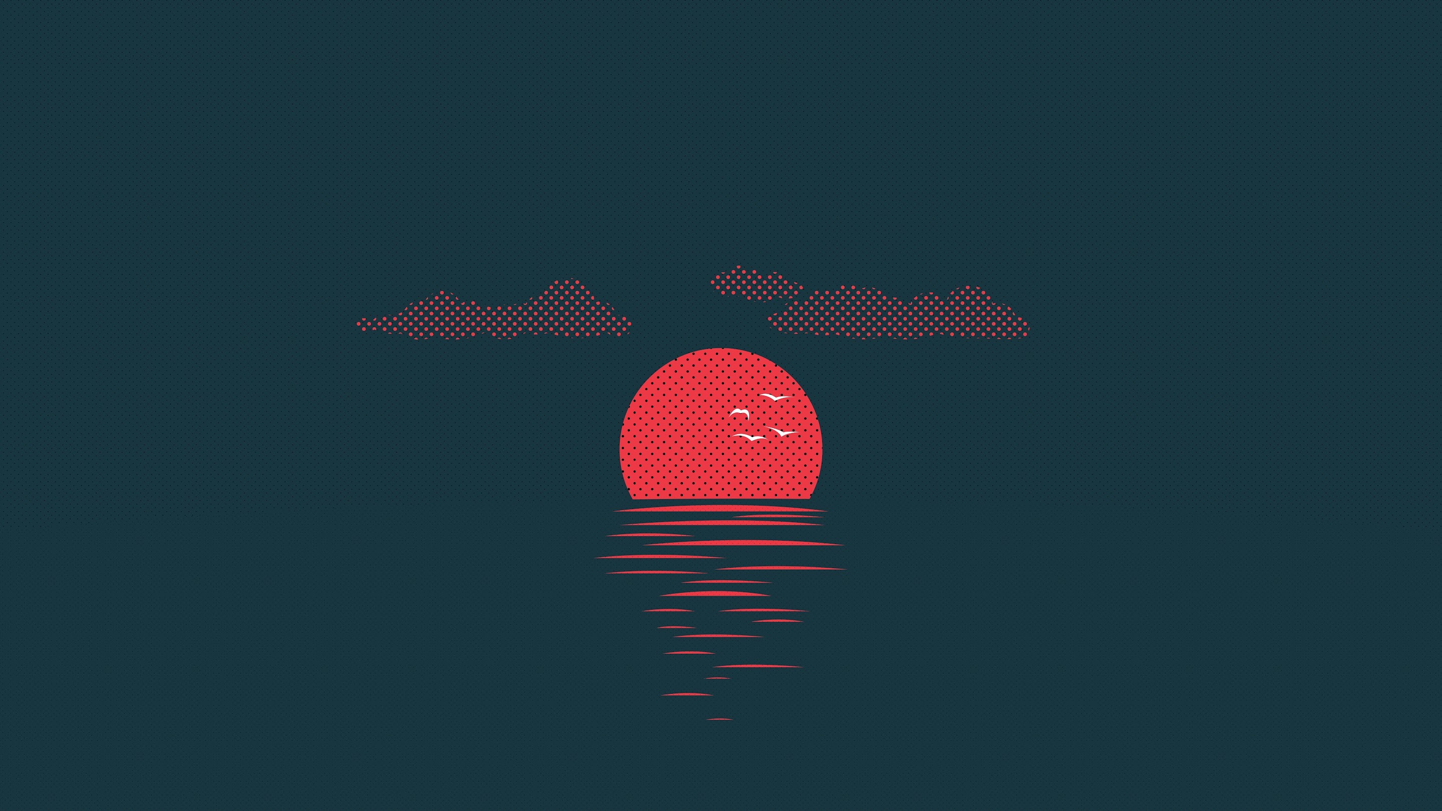 Artwork, Minimalism, Blue Background, Dots, Sun 8K Wallpaper Background with a maximum resolution of 8000x4500 px.