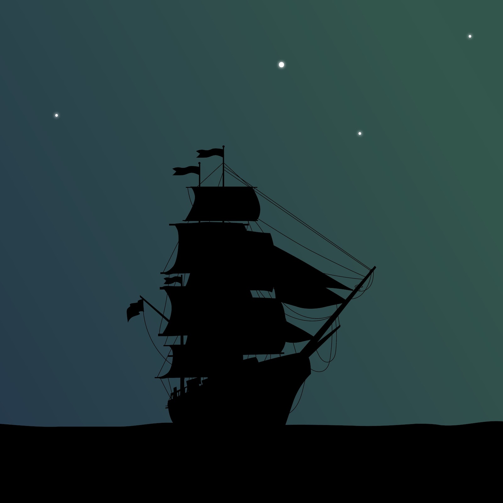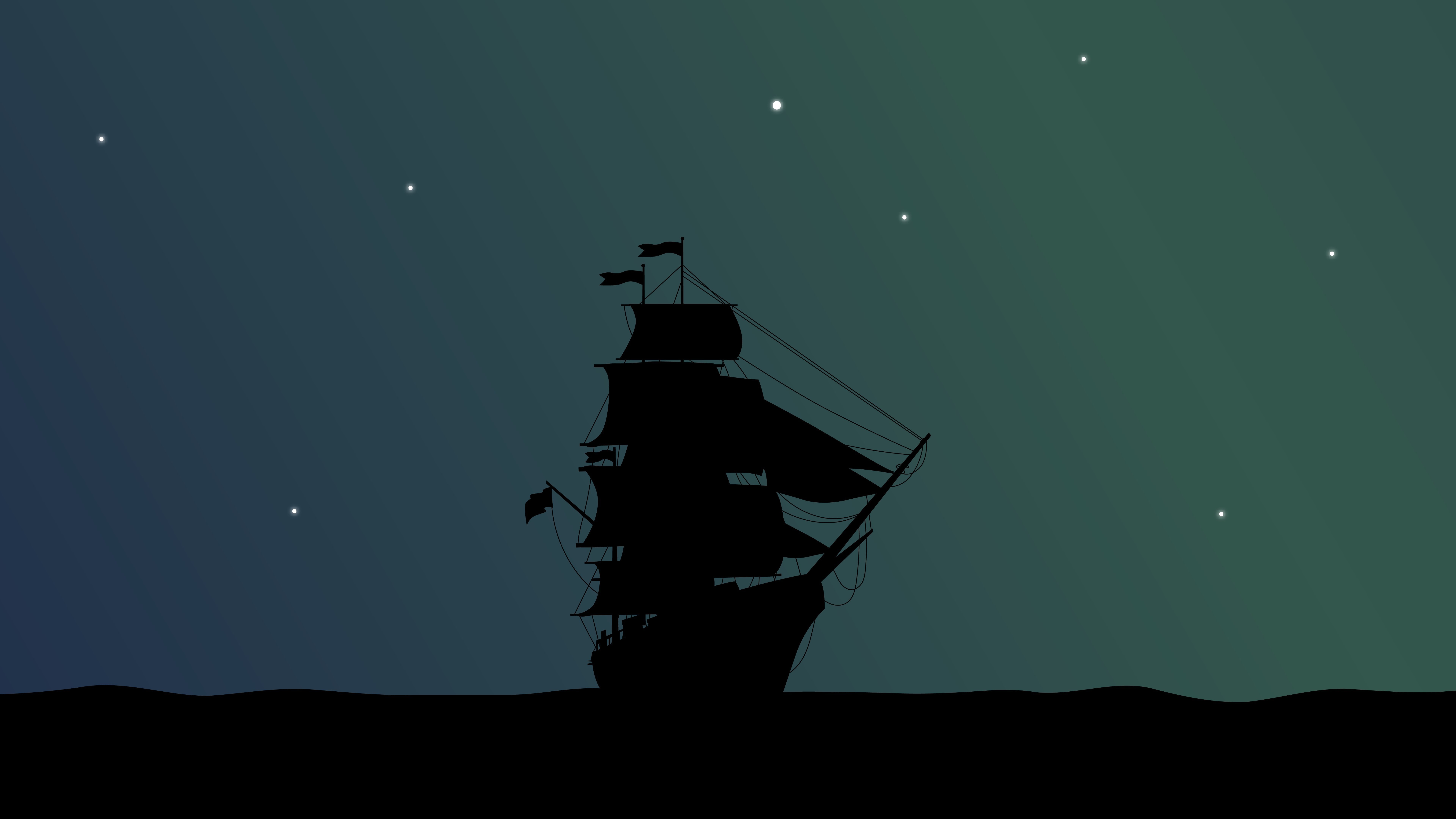 Artwork, Minimalism, Stars, Night, Pirate Ship 8K Wallpaper Background with a maximum resolution of 7680x4320 px.