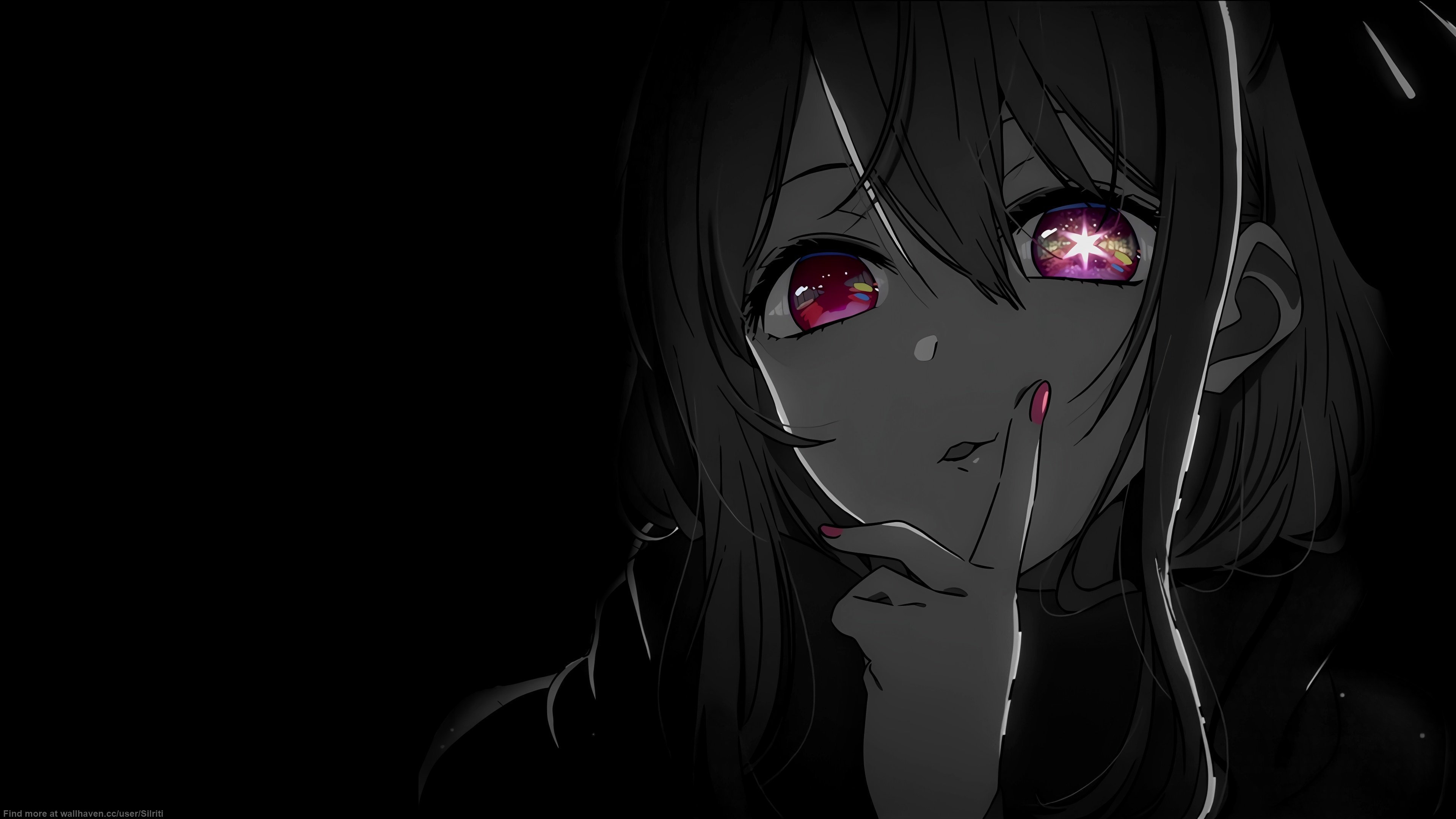 Black Background, Monochrome, Selective Coloring, Anime Girls, Simple Background 4K Wallpaper Background with a maximum resolution of 3840x2160 px.