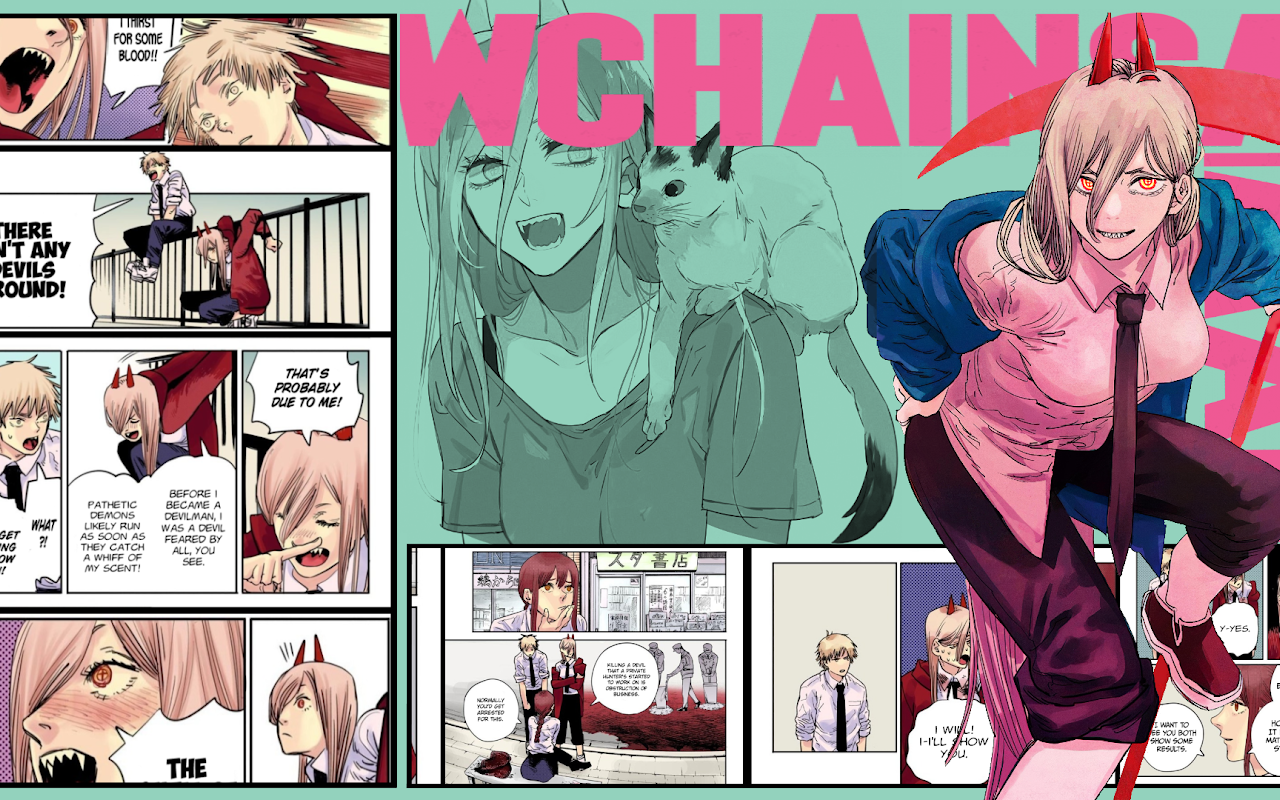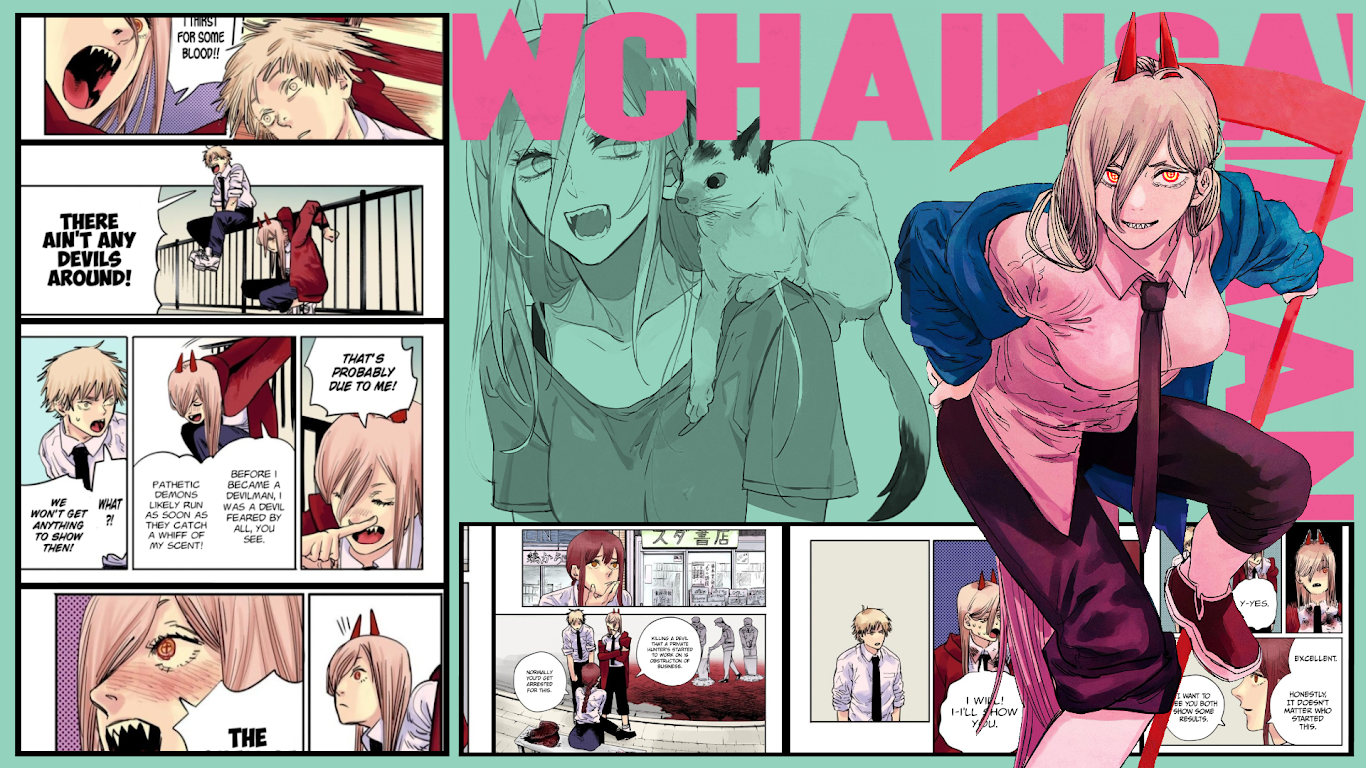 Chainsaw Man, Power (Chainsaw Man), Anime Girls, Manga, Panels Full HD Wallpaper Background with a maximum resolution of 1920x1080 px.