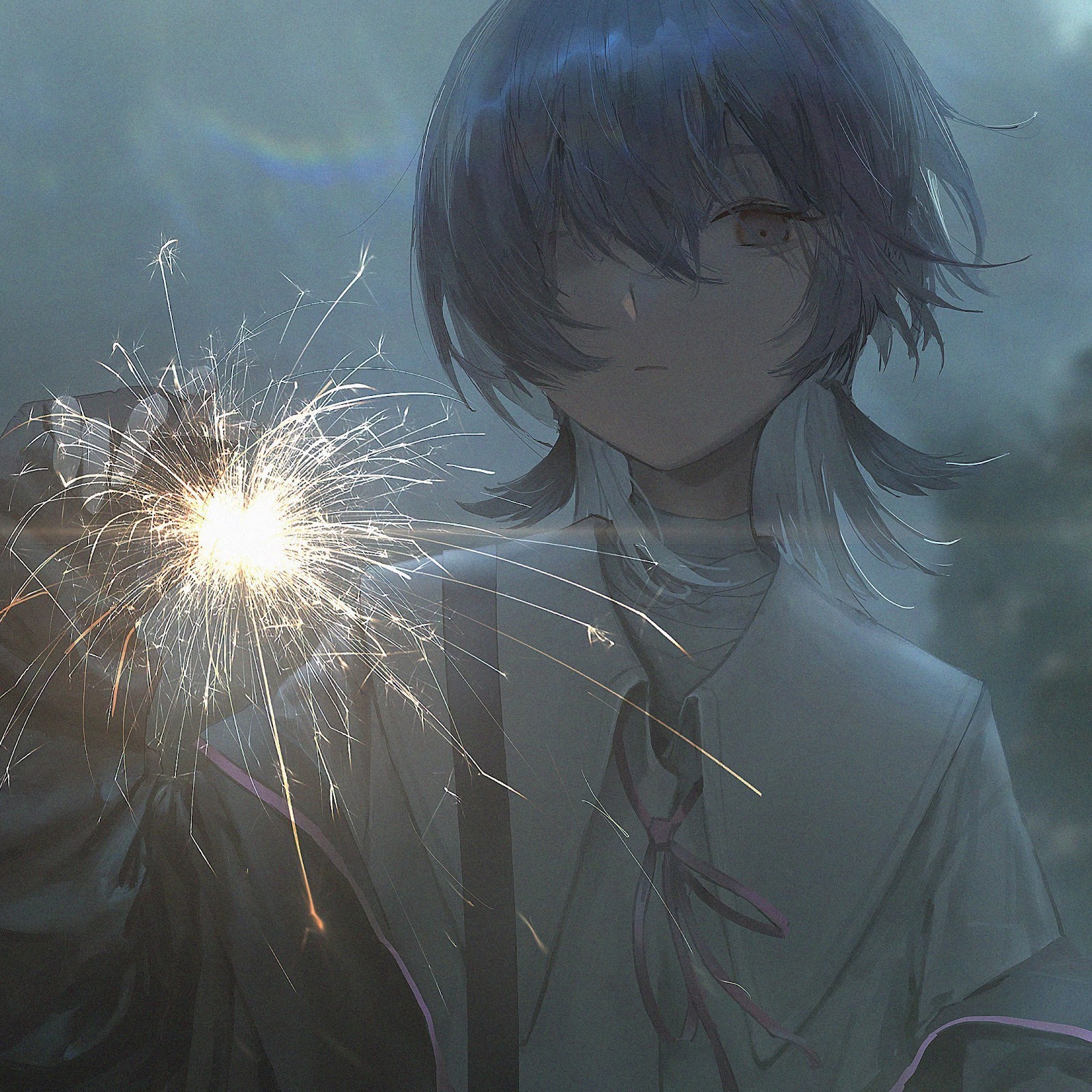 Cover Art, Fireworks, Anime Girls, Short Hair, One Eye Obstructed 4K Desktop Wallpaper