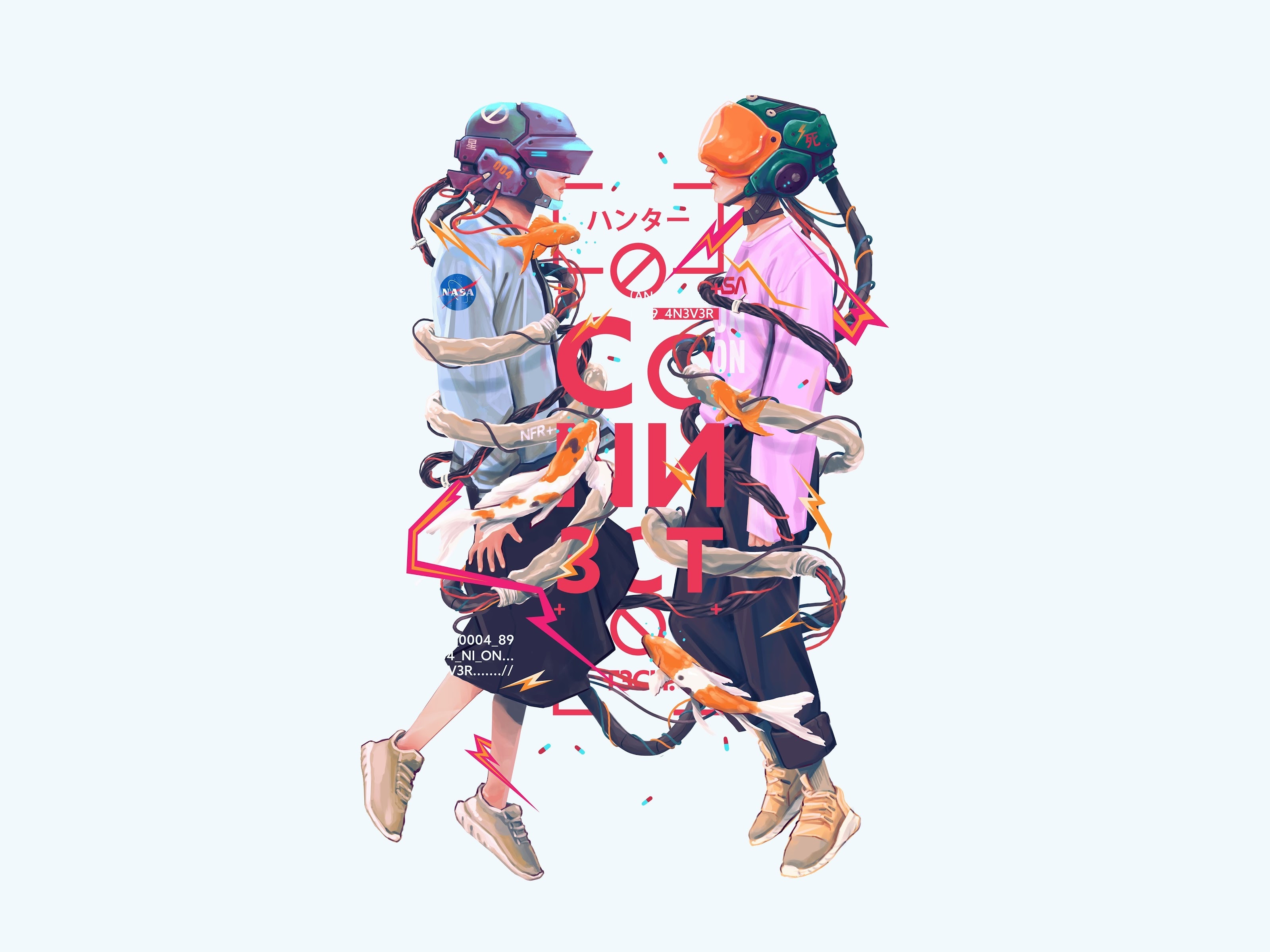 Cyberpunk, Gerone Perez, White Background, Futuristic, Digital Art 5K Phone Wallpaper