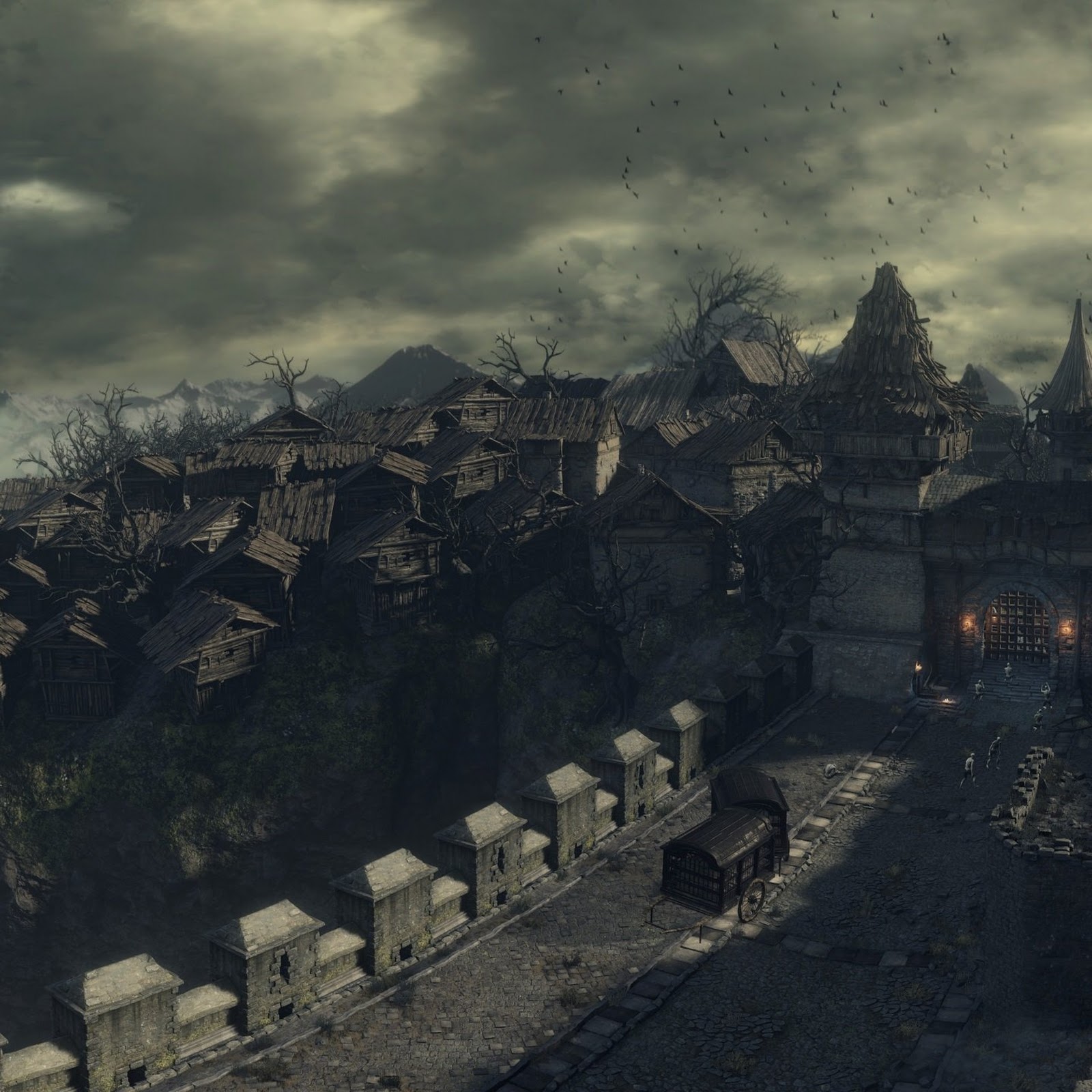 Dark Souls III, Undead Settlement, Gothic, Ruin 2K Wallpaper Background with a maximum resolution of 2560x1440 px.