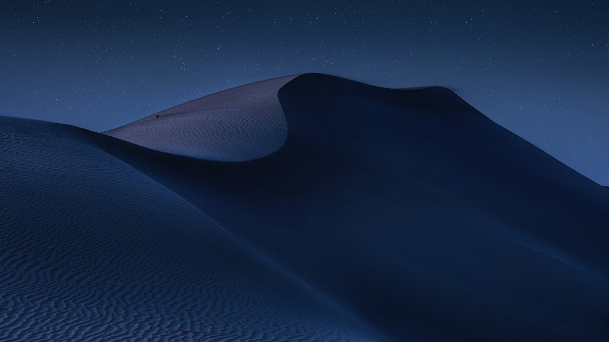 Desert, Night, Landscape, Sky Blue, Minimalism 5K Desktop Wallpaper