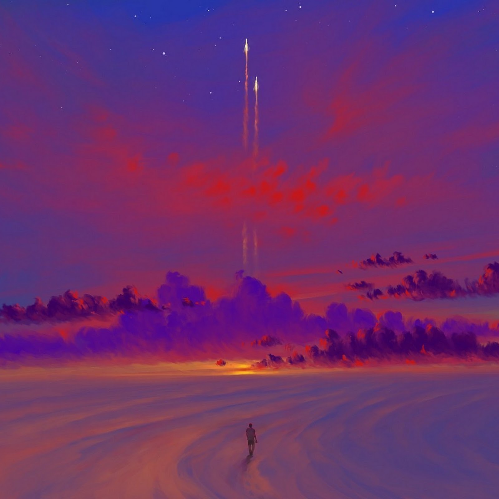 Digital Art, Landscape, Sky, Clouds, Rocket Full HD Wallpaper Background with a maximum resolution of 1920x1080 px.