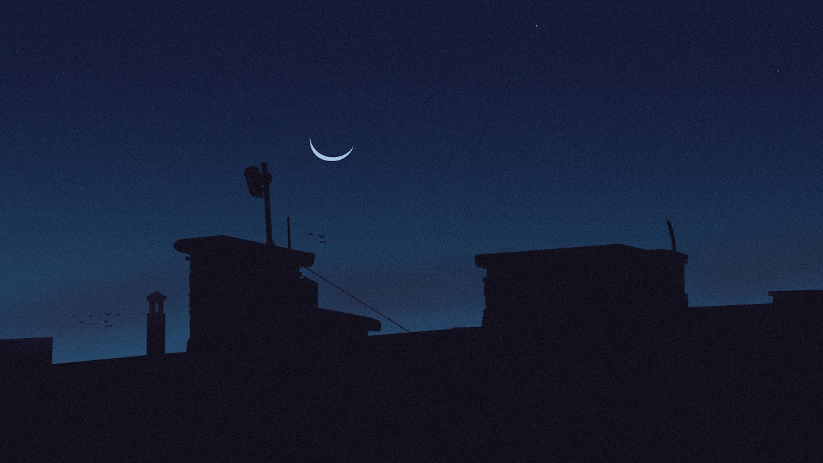 Digital Art, Lofi, Night, Crescent Moon, Silhouette 4K Wallpaper Background with a maximum resolution of 3840x2160 px.