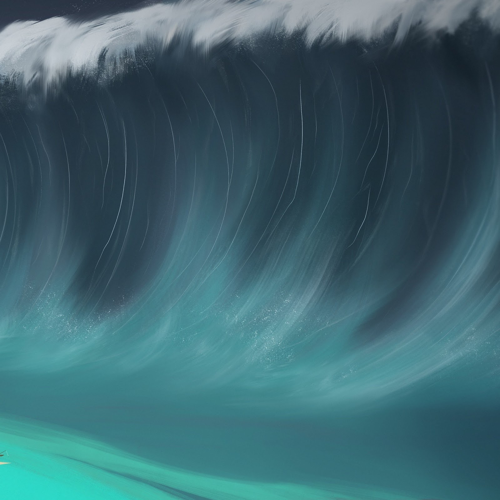 Digital Art, Tsunami, Waves, Palm Trees, Fisherman 4K Wallpaper Background with a maximum resolution of 3840x2160 px.