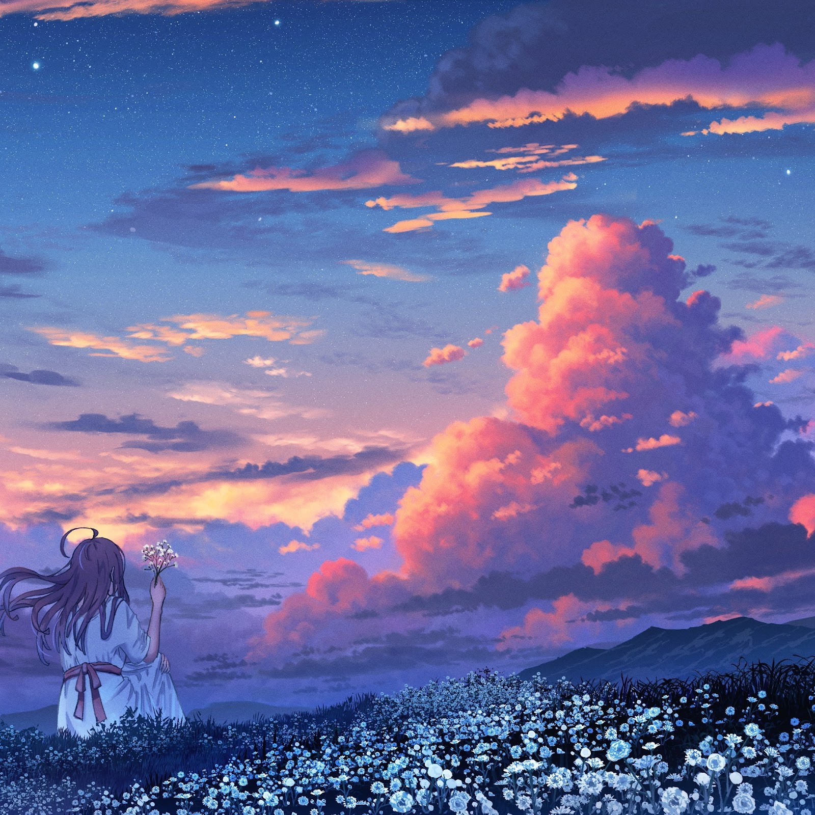 Digital Painting, Digital Art, Clouds, Field, Looking Away 4K Wallpaper Background with a maximum resolution of 3840x2160 px.